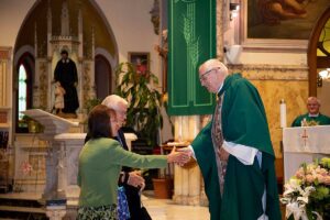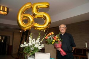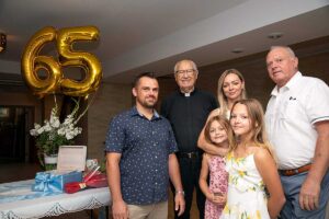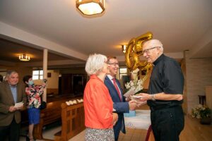 Po zakończeniu Mszy Św. Czcigodny Jubilat zaprosił wszystkich wiernych na poczęstunek ze słodyczami z Cafe Riviera.