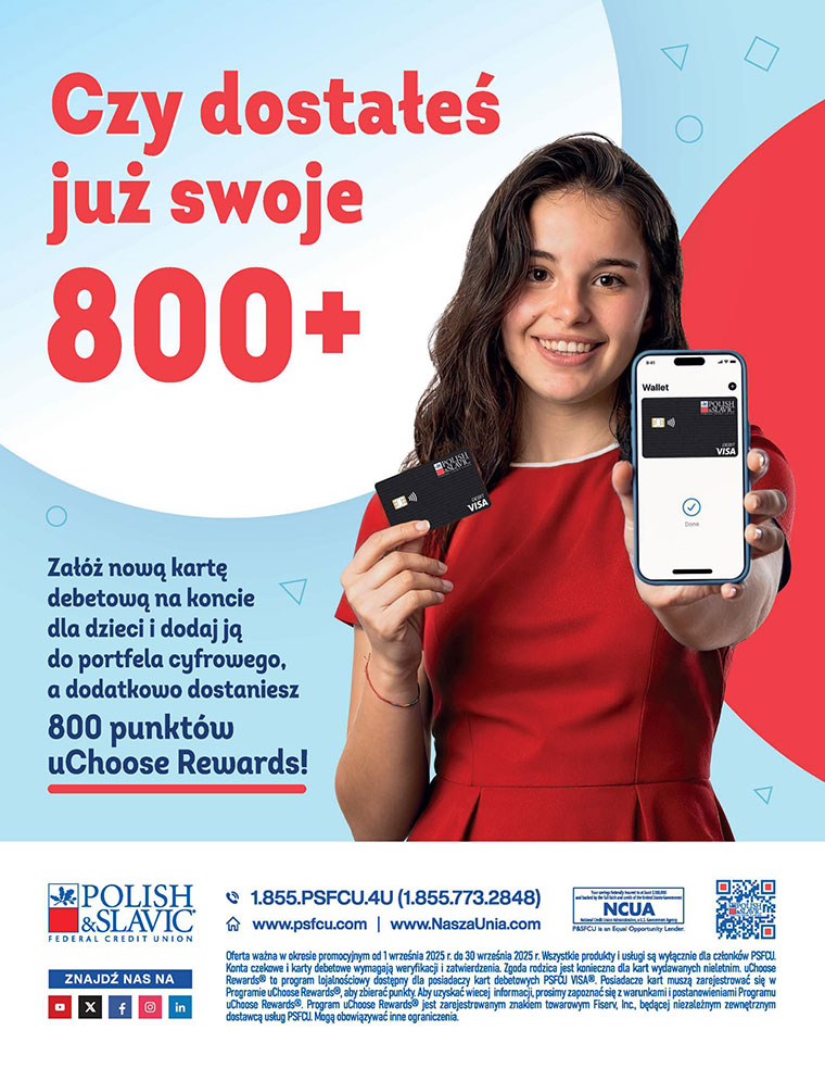 Załóż nową Kartę Debetową na dziecięcym koncie czekowym i dodaj ją do portfela cyfrowego, a otrzymasz 800 punktów uChoose Rewards¬Æ, które można wymienić na atrakcyjne nagrody!