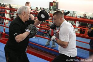 – Tomasz stoczył dzisiaj kilka rund pokazowych, uderzając w “trenerskie łapy”, które miałem na rękach i przyznam, że uderza o wiele mocniej, czuje na sobie, że wzmocniła się siła jego ciosu. Oczywiście w czasie treningów medialnych nie wyjmujemy wszystkich asów bokserskich z rękawa, i nie pokazujemy wszystkiego, nad czym pracujemy. Tomasz przybył na wadzę, jest silniejszy i trenuje bardzo ciężko. Walka z Kliczką była dla niego lekcją, z której wyciągnął właściwe wnioski. Nie mogę się doczekać by zobaczyć, jak wypadnie w pojedynku z Nagy Aguilerą – powiedział nam trener Tomasza Roger Bloodworth.