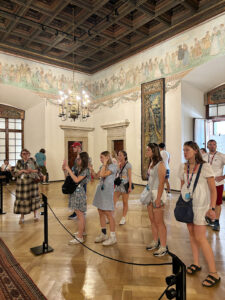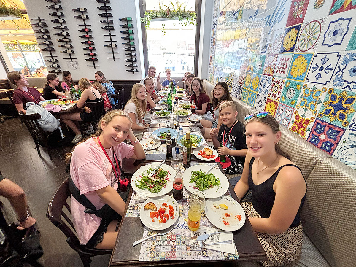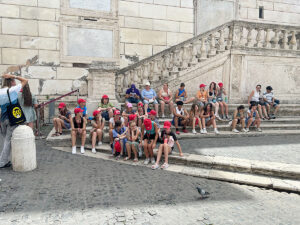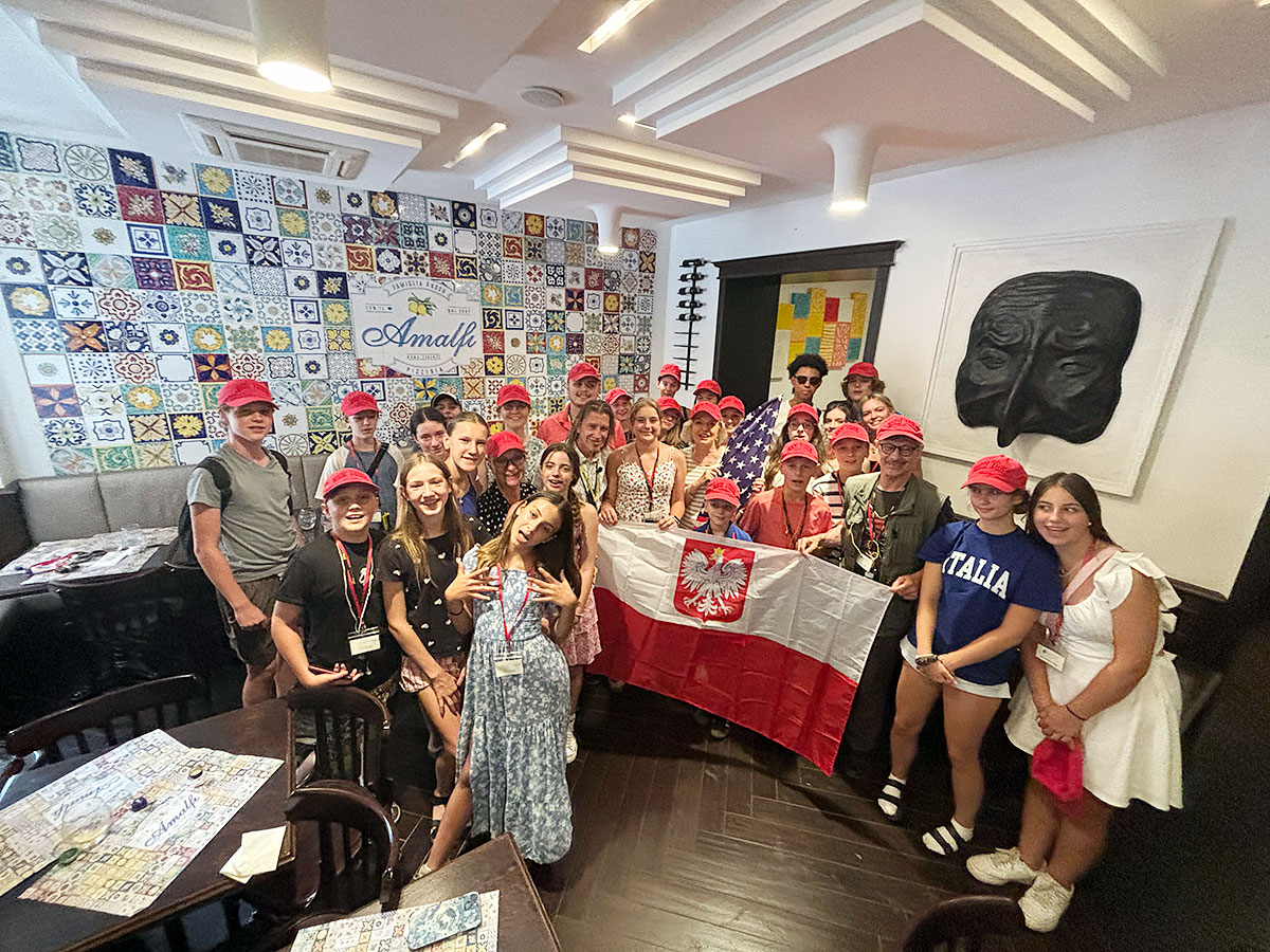 Podczas tygodnia we Włoszech młodzież poznała starożytny Rzym oraz tereny Bitwy pod Monte Cassino. Oczywiście nie zabrakło też kąpieli w Morzu Śródziemnym. Następne dwa tygodnie spędziliśmy w Polsce. Przebogaty program obejmował odwiedziny zarówno miejsc ważnych dla naszej historii jak Oświęcim, Kraków z zamkiem królewskim na Wawelu, Katedrą i Kopcem Kościuszki, pomnikiem Pierwszej Kadrowej Piłsudskiego, ale też i Muzeum św. Jana Pawła II w Wadowicach. Nie zabrakło wycieczek turystycznych do Zakopanego, na Halę Malinową, siedzibę Partyzantów Armii Krajowej. Na Hali Krupowej smakowaliśmy pierogi ze świeżymi borówkami prosto z okolicznych lasów. Młodzież i młodsze dzieci “zaliczyły” także kurs górników w kopalni Soli w Wieliczce. Miały lekcję historii w najstarszym Polskim Liceum im. Bartłomieja Nowodworskiego, z którego wywodzi się Fundacja, a które działa już od 1586 roku. Jak i prelekcję w Krakowskich Szkołach Artystycznych, gdzie poznały tajniki projektowania mody i fotografii. Mecze piłkarskie i ogniska ze śpiewami dodatkowo wypełniały czas. Natomiast wystawa w góralskim skansenie w Sidzinie na zakończenie obozu wraz z mianowaniem uczestników na Rycerzy Nowodworski Foundation była niebywałym osiągnięciem artystycznym i towarzyskim.