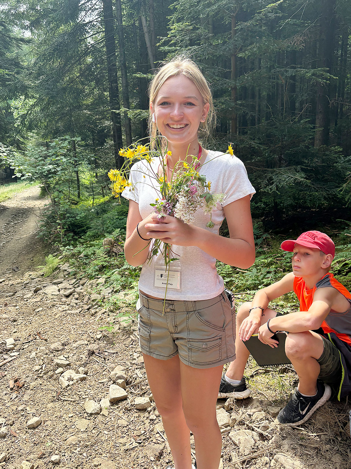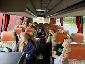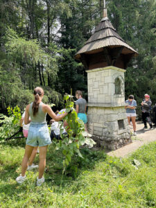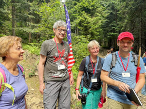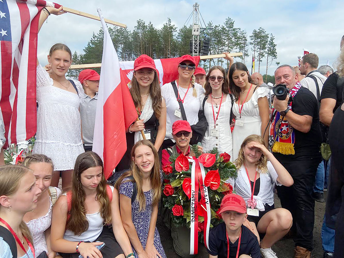 Ranek 14 lipca dla 30 osobowej grupy młodzieży, uczestników obozu “Śladami Chwały Oręża Polskiego – żywej lekcji historii” był bardzo wczesny. By zajechać na czas do Domostawy z Sidziny pod Babią Górą w Beskidzie Wysokim pobudka była o 5 rano. Młodzi z niechęcią zbierali się z lóżek i trzeba było ich mocno dobudzać na wszelkie sposoby. Ponieważ autobus był już podstawiony trzeba było się żwawo ruszać. Zbierać prowiant, wodę i wszystko potrzebne na wyjazd na odsłonięcie pomnika (trasa ok 350 km). Wszak wiedzieliśmy, że będziemy reprezentacją młodzieży Polonii Amerykańskiej co było nie lada zobowiązaniem. W ramach przygotowań zamówiliśmy piękny wieniec z biało czerwonych goździków ze wstęgami i napisem “Dzieci Polonii i Nowodworski Foundation”. Dzień wcześniej wieniec został złożony w zimnej piwnicy by kwiaty nie zwiędły do następnego dnia.