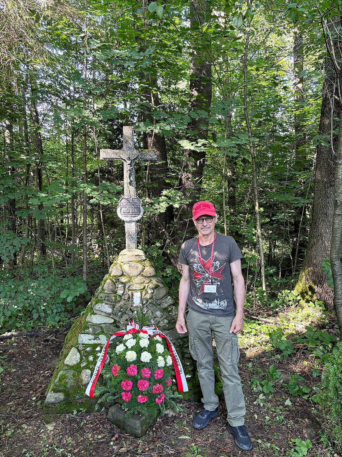 Ujechaliśmy już spory kawał drogi, kiedy nagle, jak piorun z jasnego nieba, pada pytanie: gdzie jest wieniec? I tu konsternacja…nie ma! Chyba został w piwnicy. Stres nie miał granic…co my złożymy pod pomnikiem? W następnym momencie zacząłem dzwonić do potencjalnych kwiaciarni przy naszej trasie w stronę Rzeszowa i dalej do Domostawy. Ale niestety to była niedziela, wczesny ranek i wszystkie kwiaciarnie były pozamykane. Nie pozostało mi nic innego jak medytacja i modlitwa do Boga by jakimś cudem przeniósł nasz wieniec pod pomnik w Domostawach. Po pół godziny medytacji i modlitw, oraz staniu godzinę w korku dotarliśmy na miejsce.