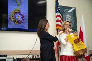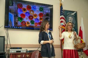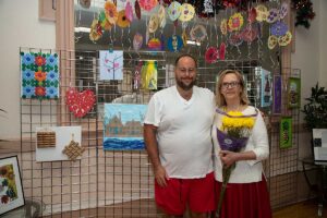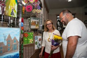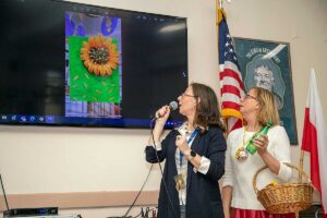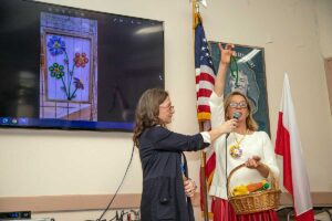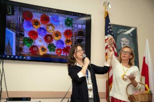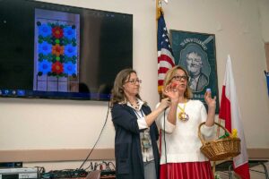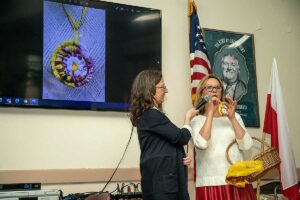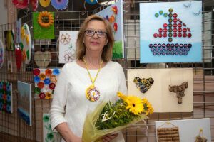 Przed wernisażem Agata Skowrońska – Dyrektor Programowy, przedstawiła artystkę, pokazała wirtualnie całą wystawę, a Małgorzata przedstawiła widzom przedmioty których używała tworząc swe piękne dzieła.