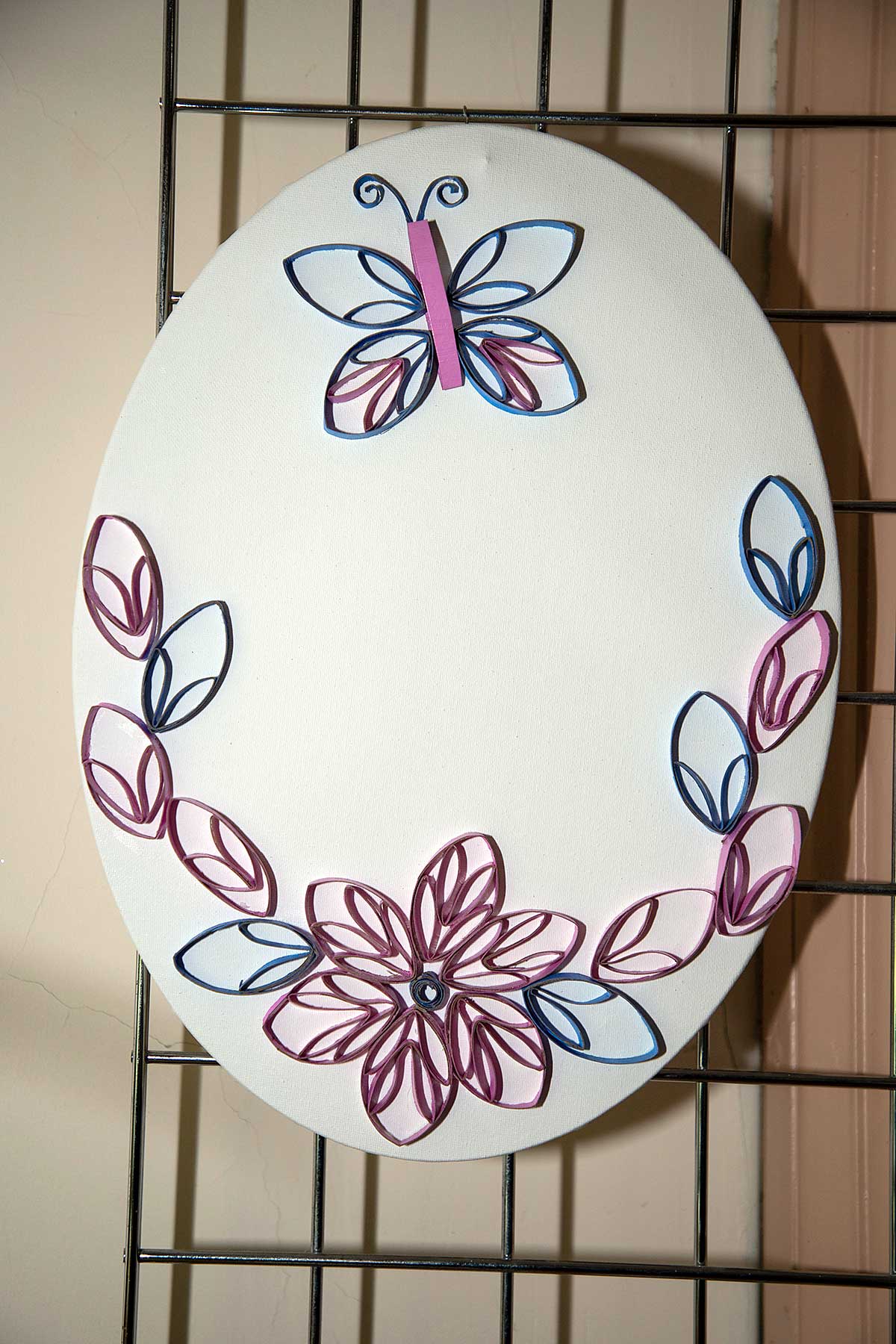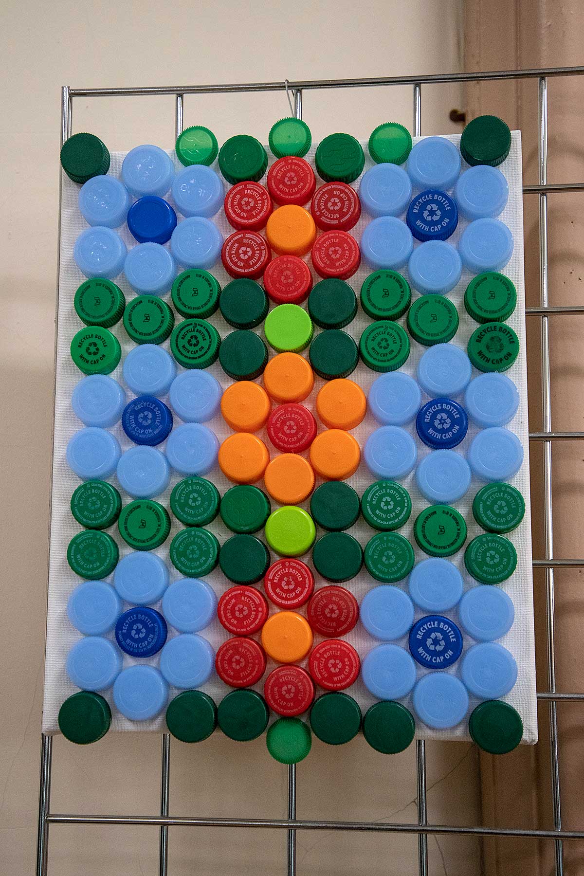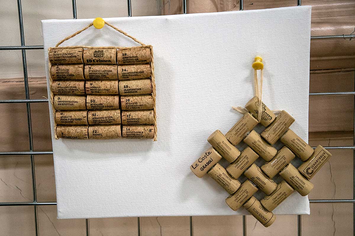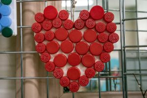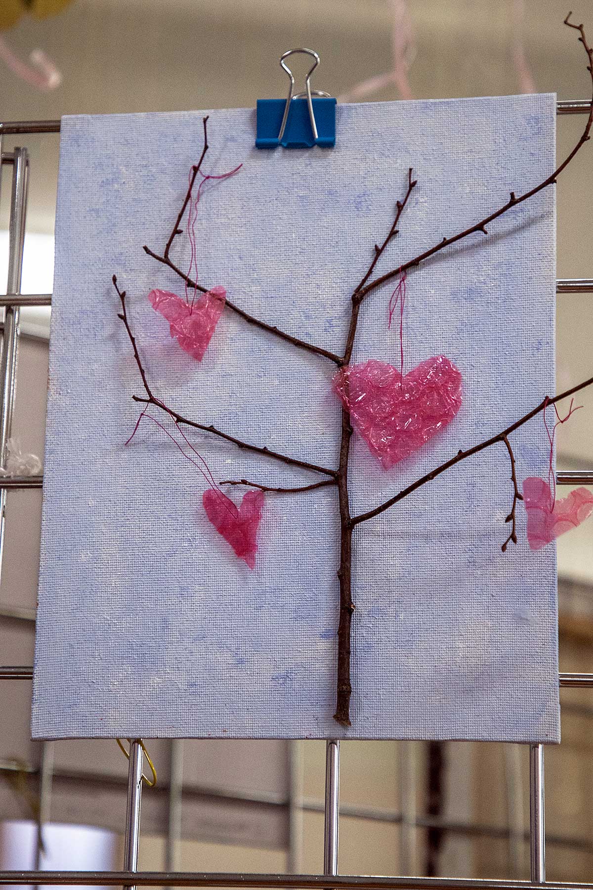 Małgorzata pokazała obrazy, kompozycje kwiatowe, kolaże, wszystko wykonane z materiałów które wyrzucamy, były tam: nakrętki od różnych butelek, folie bąbelkowe, papierowe torby z pięknymi nadrukami, plastikowe łyżeczki, otwarcia do puszek metalowych, korki, kawałki plastikowych butelek, resztki woskowych kredek, pokrojonych tekturek z rolek papieru toaletowego czy siatek z owoców i warzyw. Aż trudno uwierzyć że można było z tych odpadów stworzyć tak piękne w kształcie i kolorze obrazy.