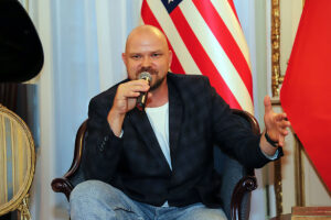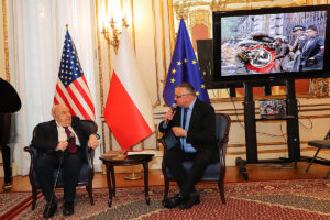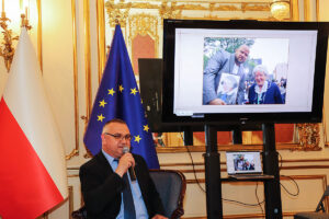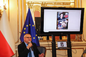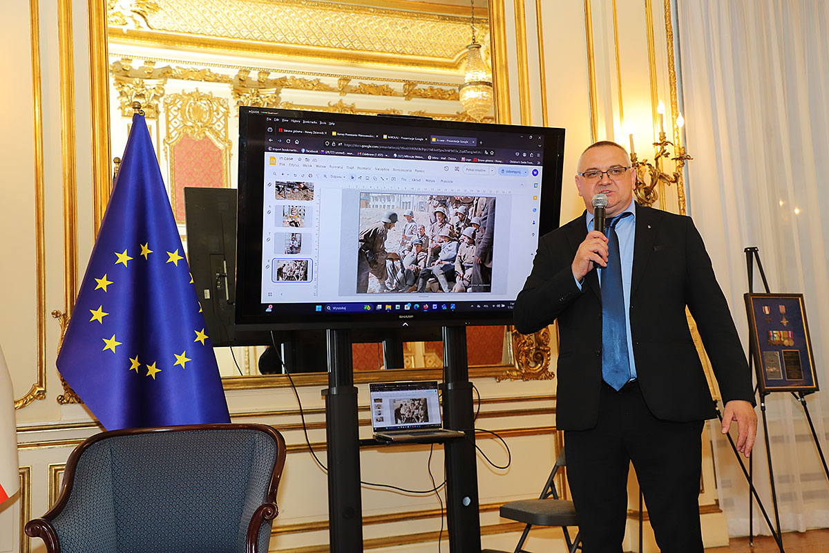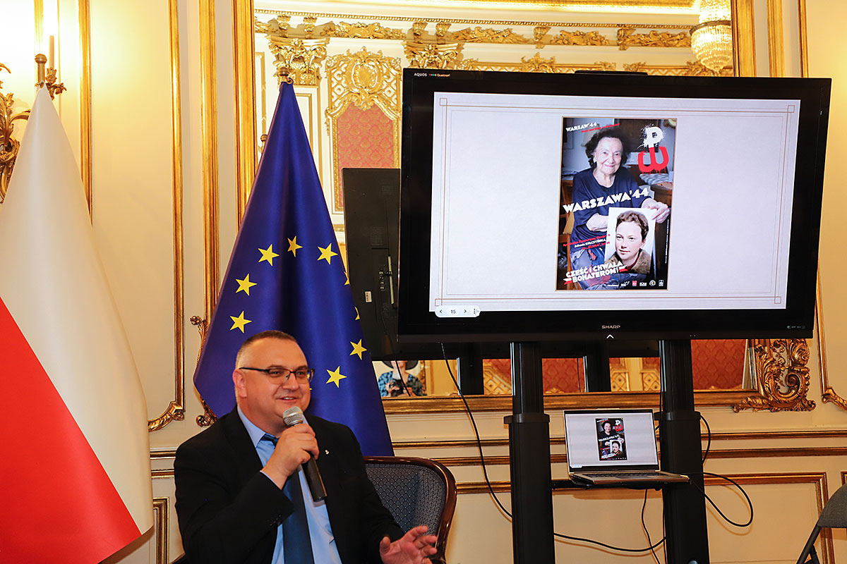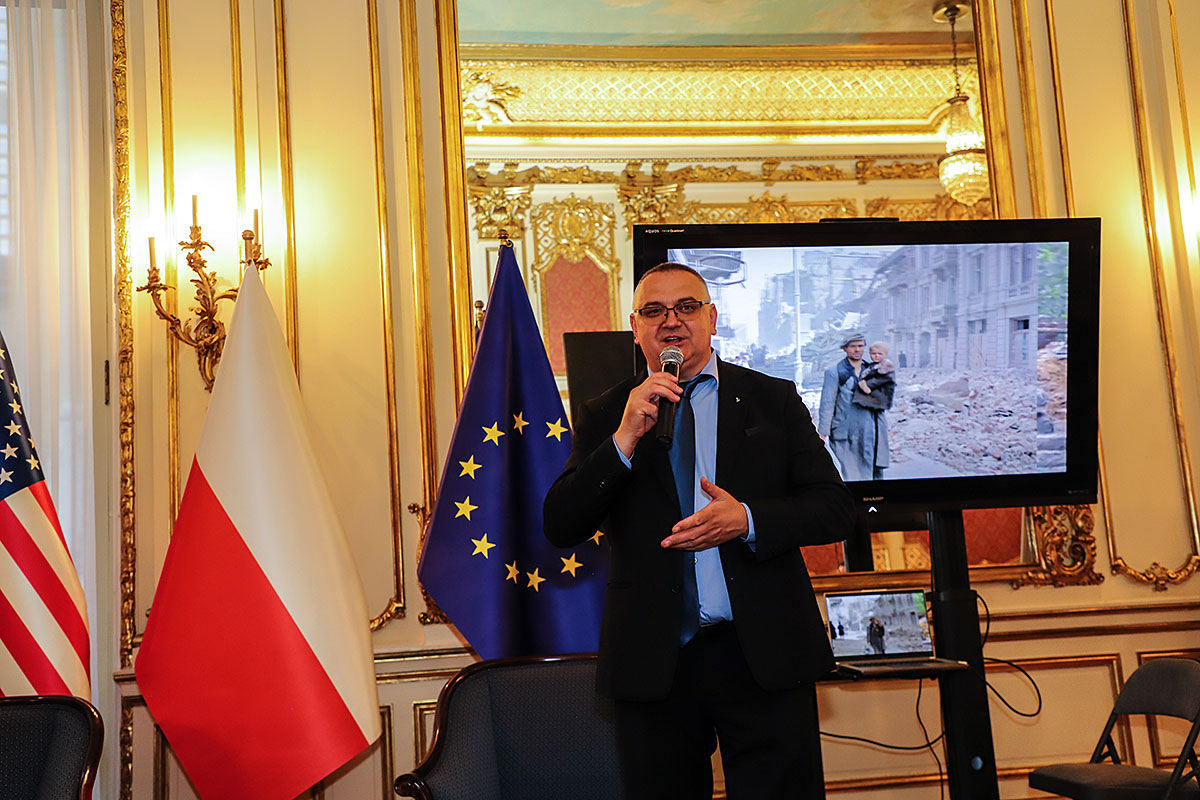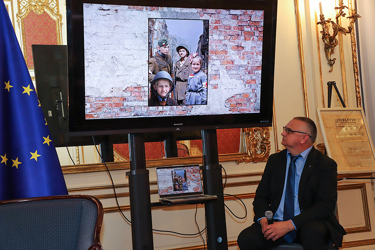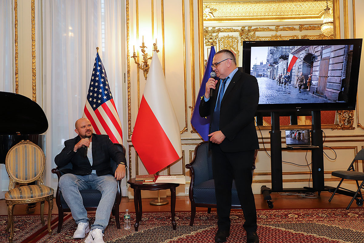 Następnie Wojciech Maślanka rozmawiał z Mikołajem Kaczmarkiem, kolorystą prezentowanych zdjęć powstańczych. Opowiadał on o technice koloryzowania zdjęć, wspominał wzruszające spotkania z żyjącymi jeszcze powstańcami. Pierwszym podkolorowanym przez niego zdjęciem była dziewczynka z Powstania Warszawskiego, które znalazł w internecie. Dziewczynka klęczy na podwórku, gdzie jest zrobiony cmentarzyk i pochowany jest jej brat. Kolorysta za swoją patriotyczną pracę i działalność społeczną na rzecz popularyzowania historii otrzymał już wiele odznaczeń, m.in. Nagrodę Bohaterów im. Powstańców Warszawskich, Medal ZHP i Krzyż Zasługi RP. Rozmowie towarzyszyła ciekawie zrobiona prezentacja zdjęć koloryzowanych oraz ze spotkań artysty z powstańcami, przygotowana przez Nicolę Gabrielę Maślankę. Mikołaj Kaczmarek przygotował niespodziankę, wręczył pokolorowane zdjęcia rodzinne Andrzejowi Rawiczowi oraz Januszowi Romańskiemu, synowi powstańca por. Romana Romańskiego, dowódcy zgrupowania “Żbik”.