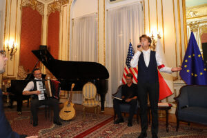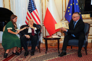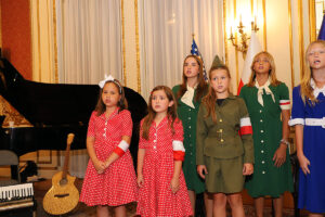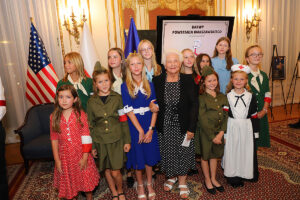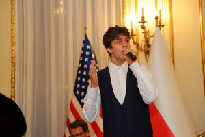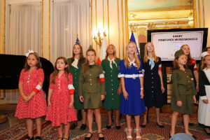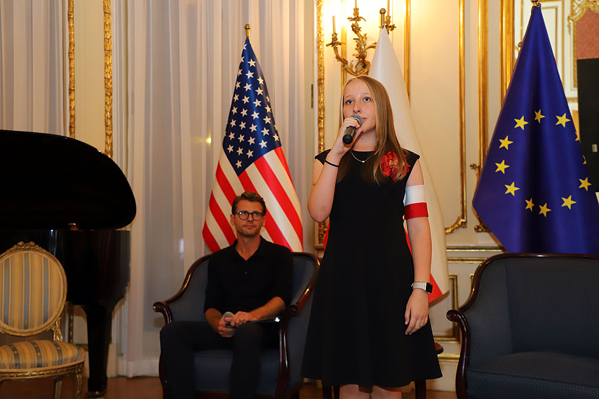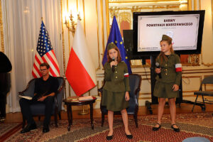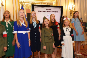W części artystycznej wystąpił założony w 2020 roku Chór Dziecięcy Polonia, prowadzony przez Dominika Grzyba, który grał na fortepianie, gitarze i akordeonie. Dzieci, ubrane w stroje z okresu lat 40-tych wzruszająco śpiewały powstańcze piosenki. Wspaniałym falsetem zaśpiewał “Kołysankę z Getta”, Michał Jamrożek, mający już na swoim koncie wiele konkursów i nagród muzycznych. Dzieci z orkiestry Polonia grały na akordeonie, klarnecie i ksylofonie.