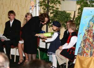 dziekujac dzieciom za wystep i stwierdzajac, ze ich polszczyzna jest godna do nasladowania i zyczylaby sobie takiej na podlogach