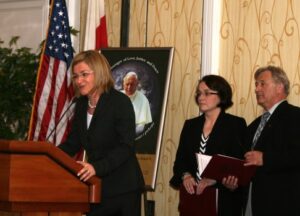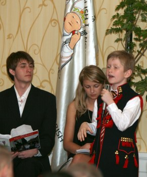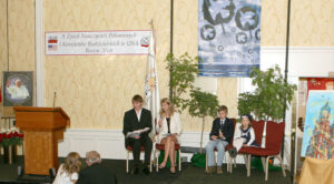 Za przygotowany program dzieciom i mlodziezy dziekowano owacjami na stojaco, a pozniej, takze prezentami. Po odspiewaniu hymnow narodowych Polski i USA i wspolnej modlitwie, gosci i uczestnikow przywitali Jolanta Bolec i Jan Kozak, dyrektorzy wystepujacej w roli gospodarzy SJP w Bostonie. Miedzy innymi wstepne wystapienie miala senator Polski, pani Krystyna Bochenek, jeszcze raz