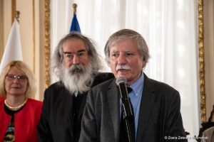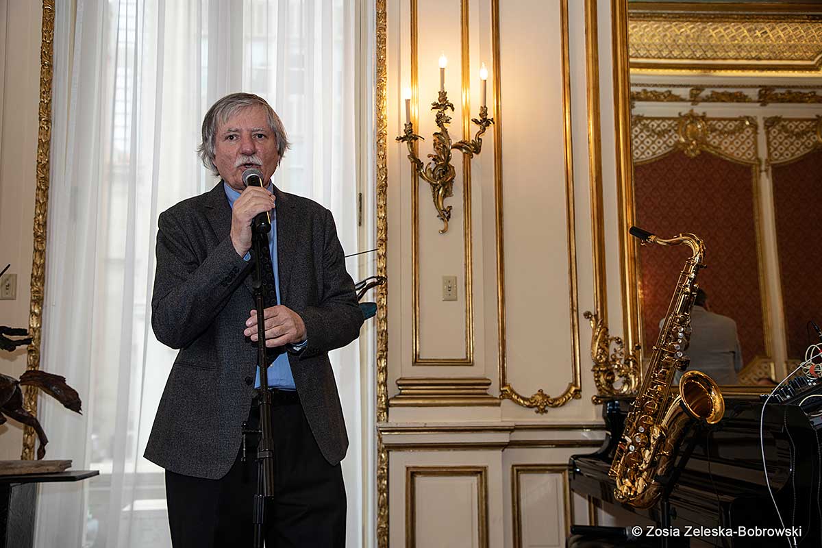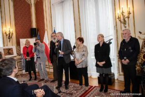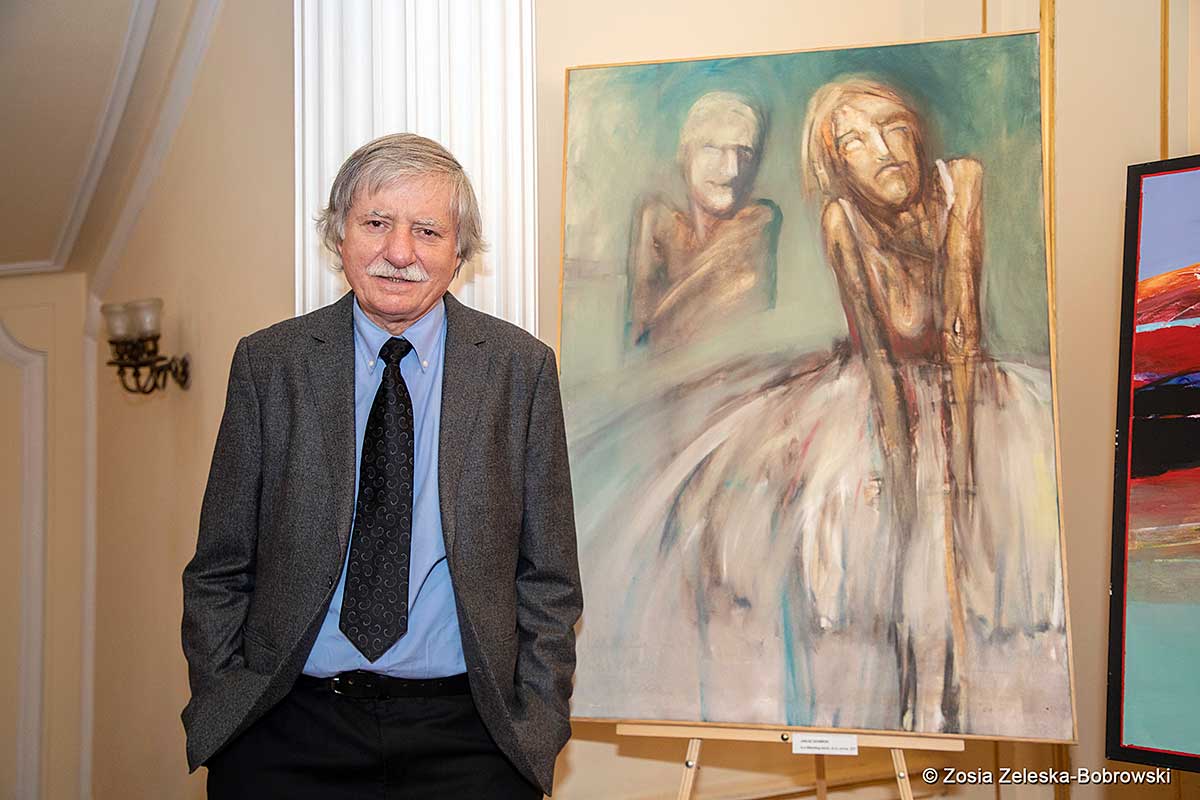 Obecny też był konsul Stanisław Maria Starnawski. Kurator Janusz Skowron przedstawił krótko historię Grupy. Emocjonaliści (“Emotionalist Artists Group”) to międzynarodowa grupa artystyczna, powstała w 1994 roku w Nowym Jorku z inicjatywy znanego rzeźbiarza prof. Lubomira Tomaszewskiego. Tworzyli ją malarze, rzeźbiarze, graficy, fotografowie, twórcy tkaniny artystycznej, tancerze, poeci i muzycy. Przy całej różnorodności wypowiedzi artystycznej, starali się oni uprawiać sztukę opartą na odwoływaniu się do emocji i uczuć zarówno samych twórców, jak i odbiorców. Janusz przedstawił obecnych na wernisażu członków Grupy: Beatę Szpurę, Aleksandrę K. Nowak, Józefę Tomaszewską, Mieczysława Mietko Rudka, Wojciecha Kubika. Każdy z nich opowiadał o swoich wrażeniach związanych z przynależnością do Grupy. Obecna była również wdowa po profesorze, Krystyna Tomaszewska.