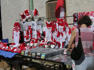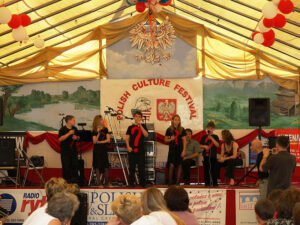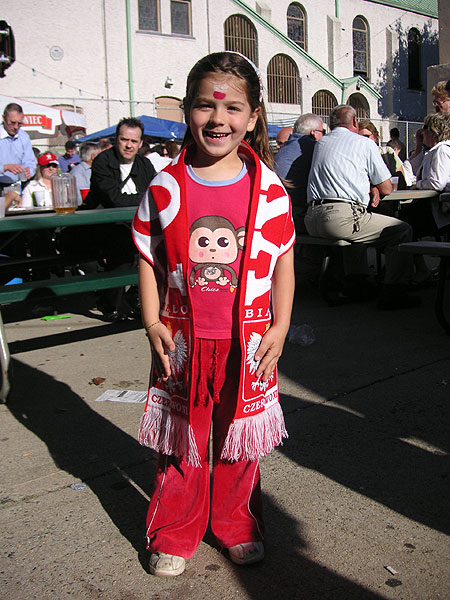 W bogatej ofercie artystycznej każdy mógł znaleźć coś dla siebie. Delektując się specjałami kuchni polskiej, w tym domowym bigosem przygotowanym przez naszych parafian można było oklaskiwać na scenie artystów. Sprzedawcy ofiarowali bogaty wybór polskich książek, płyt z piosenkami i filmami. Nie zabrakło także szalików, czapek, koszulek w polskich barwach. Te dodatki współgrały z wymalowanymi, w tych samych barwach buziami małych dzieci.