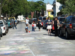 Papiesko-dziecięcy motyw wrócił jeszcze raz w drugim dniu festiwalu, gdy dzieci wyszły na ulicę, aby pod kierownictwem Teresy Rysztof malować na asfalcie obrazy o papieskiej tematyce. Kilkadziesiąt dzieciaków zamieniło czarny asfalt w kolorowy kobierzec. Zwyciężczynią w grupie młodszej została Izabela Balewander (6lat) a w grupie starszej Karolina Wrześniewski (12 lat). Tymczasem na scenie pojawiali się coraz to nowi artyści. Zespół młodzieżowy Bona To Vada był entuzjastycznie przyjmowany przez młodzież , ale i dorośli słuchali go z przyjemnością. Z podziwem patrzyliśmy na ambitny i ciekawy program w wykonaniu dzieci z Teatru Tańca i Ruchu Radoslawa Natkańskiego. Zaś dzieci i młodzież z Klubu Tanecznego Józefa Pałki w takt walca wiedeńskiego i innych melodii zamieniali namiot w piękną salę balową. Scena zawirowała także w takt polskich melodii ludowych, gdy pojawił się na niej folklorystyczny zespół Polonez Dance. Zaś kabaret Prima Aprilis w humorystyczny przedstawił życie Polonii, obnażając jego słabostki i absurdy. Profesjonalna gra, dobre teksty znalazły uznanie zebranych. W podobnym nastroju, Jerzy Plata prezentował niektóre utwory ze swojej ksiązki “Emigracja na wesoło”. Polonijny piosenkarz Zoran Gabor nastrojowymi, czasami sentymentalnymi piosenkami świetnie bawił festiwalową publiczność. Gdy nadszedł czas zakończenia festiwalu trudno było się rozstać. Zespół Mirage pod presją zgromadzonych wykonywał coraz to nowe utwory, tak że festiwal zakończył się półtorej godziny później niż planowano.