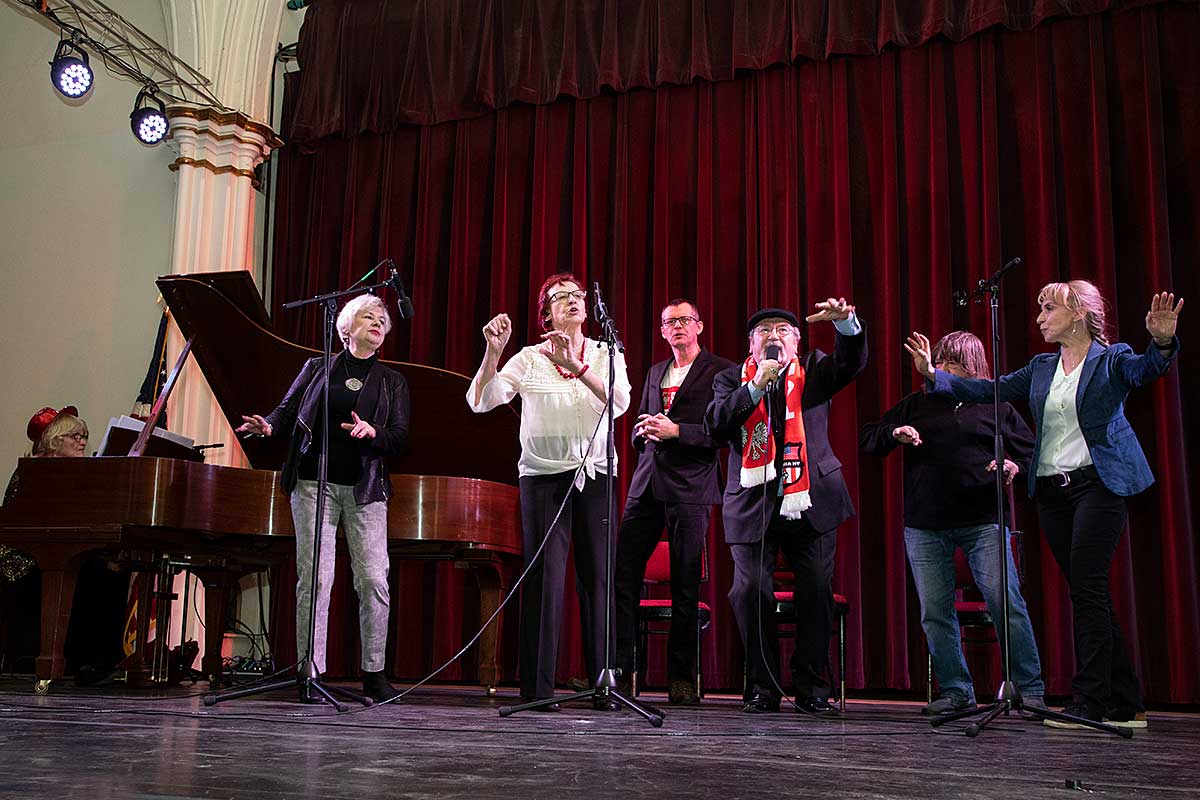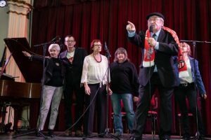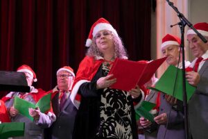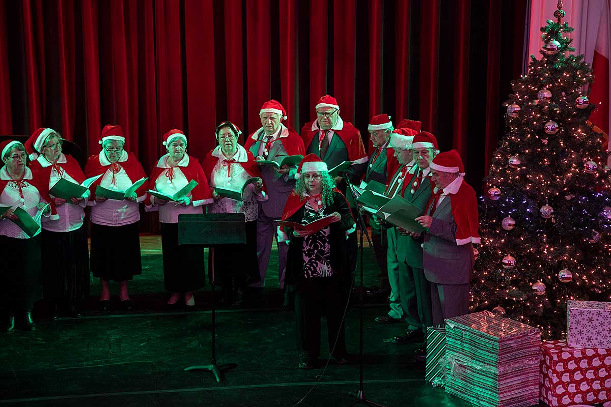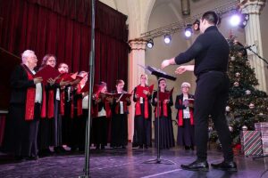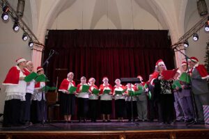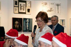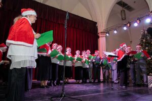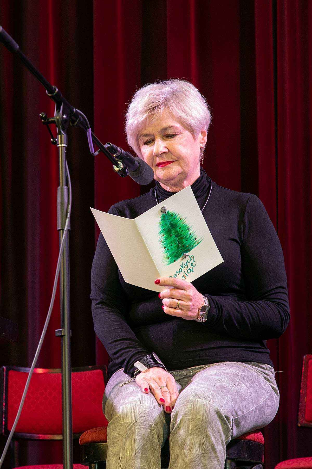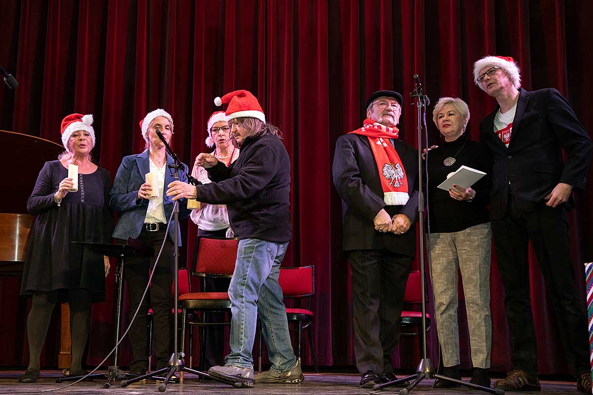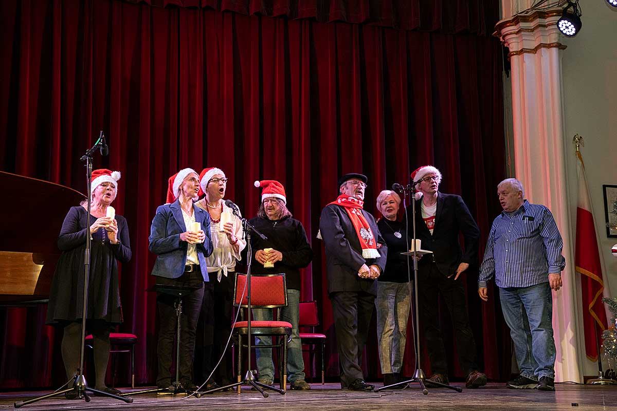 Następnie wystąpił Chór działający przy Centrum Seniora Krakus, Zaśpiewali oni trzy kolędy: “Dzisiaj w Betlejem”, “Gdy się Chrystus Rodzi” i “Bóg się Rodzi” przeplatane piękną poezją związaną ze Świętami i Wigilią autorstwa ks. J. Twardowskiego, E.Waśniowskiej oraz J. Kasprowicza w wykonaniu dyrygentki chóru Kasi Drucker. Akompaniowała na fortepianie Ola Watras.