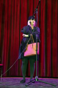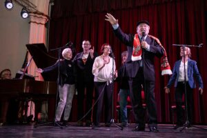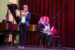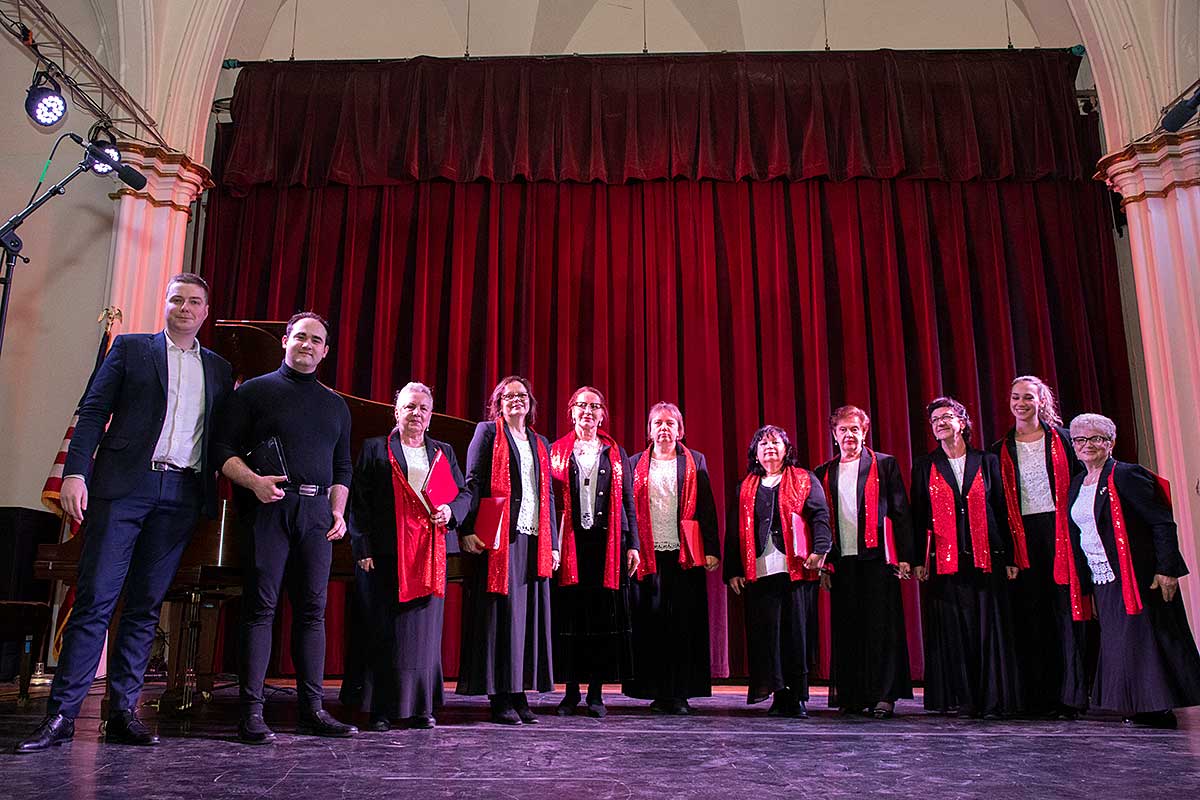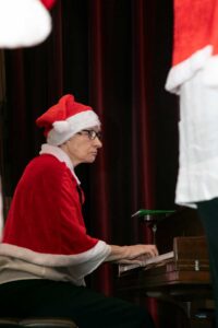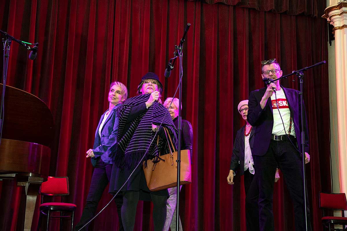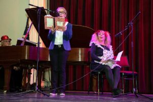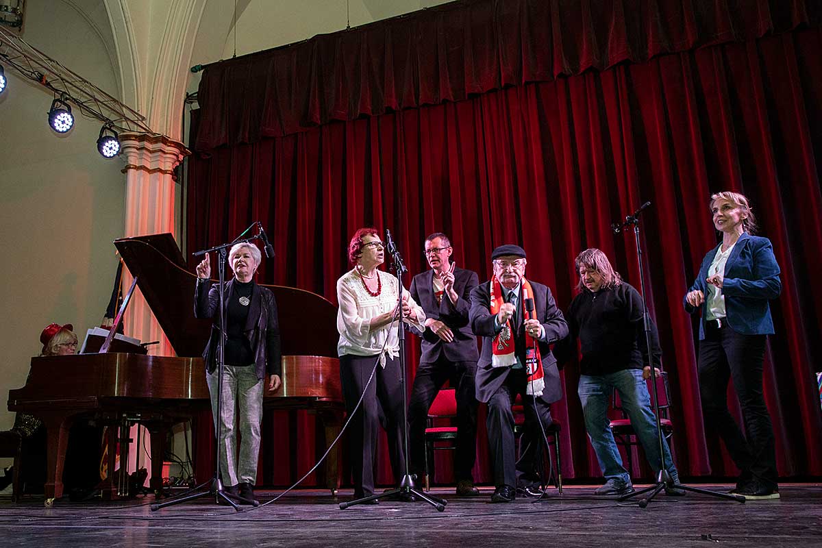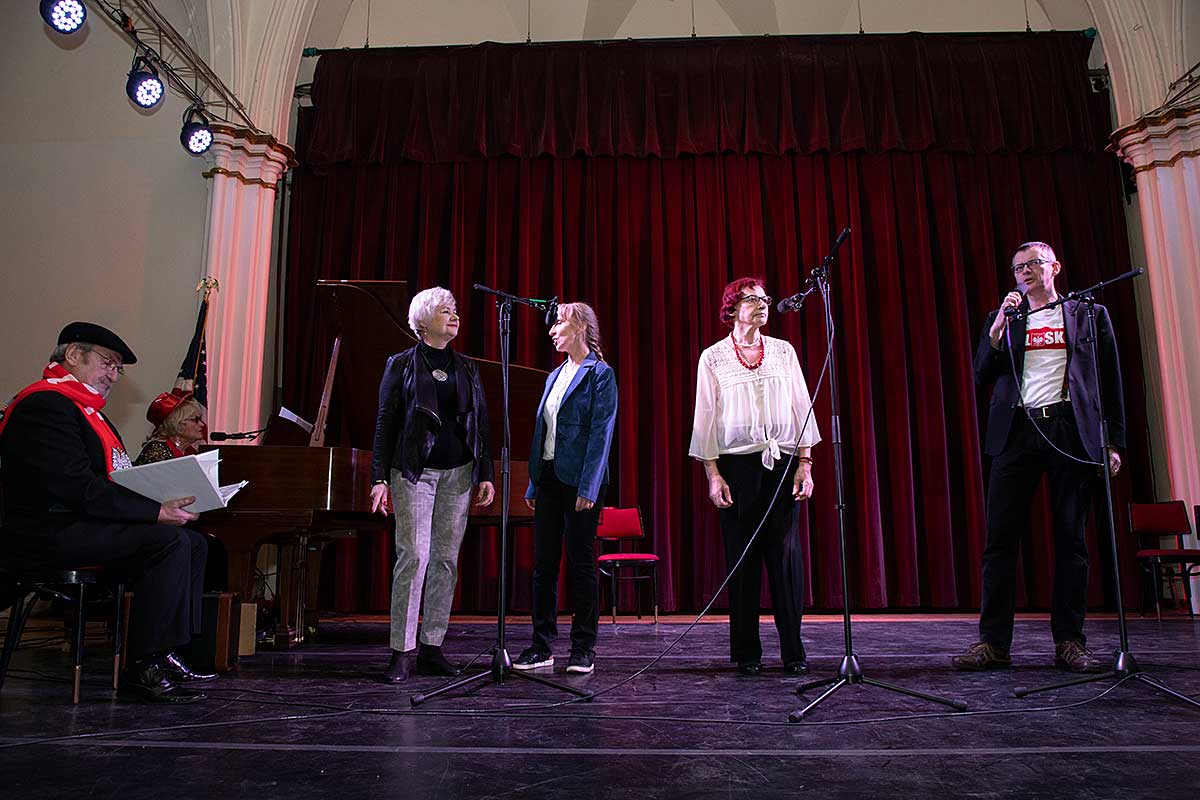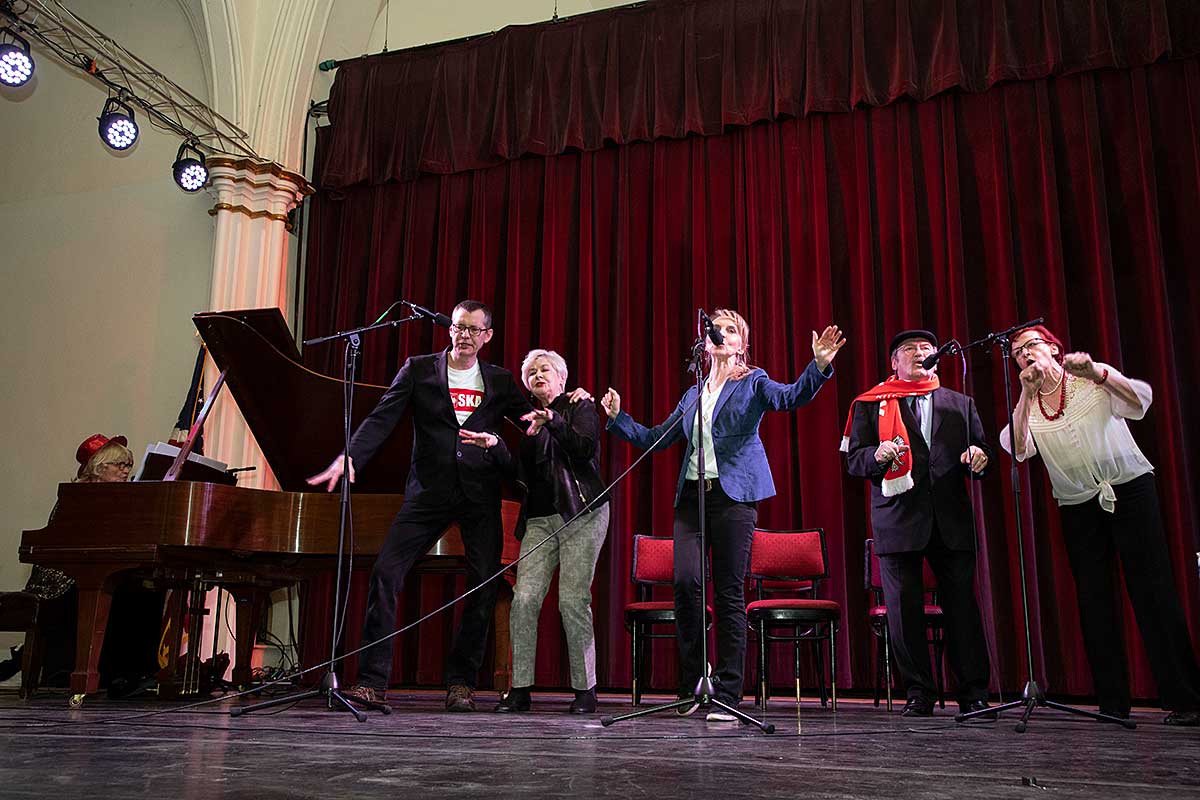 Następnie wystąpił Chór działający przy Centrum Seniora Krakus, Zaśpiewali oni trzy kolędy: “Dzisiaj w Betlejem”, “Gdy się Chrystus Rodzi” i “Bóg się Rodzi” przeplatane piękną poezją związaną ze Świętami i Wigilią autorstwa ks. J. Twardowskiego, E.Waśniowskiej oraz J. Kasprowicza w wykonaniu dyrygentki chóru Kasi Drucker. Akompaniowała na fortepianie Ola Watras.