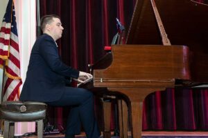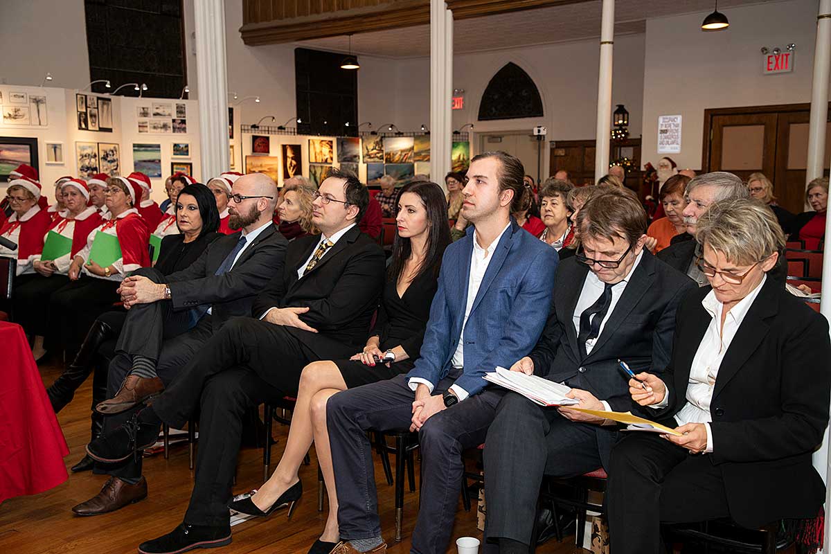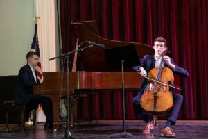 Jako pierwszy wystąpił duet muzyczny: Jakub Wyciślik robiący teraz magisterium w Manhattan School of Music, grający na wiolonczeli oraz Nicholas Alexander Kaponyas – fortepian. Zagrali oni trzy kolędy “Gdy Śliczna Panna”, “Wśród Nocnej Ciszy”, i “W Żłobie Leży”.