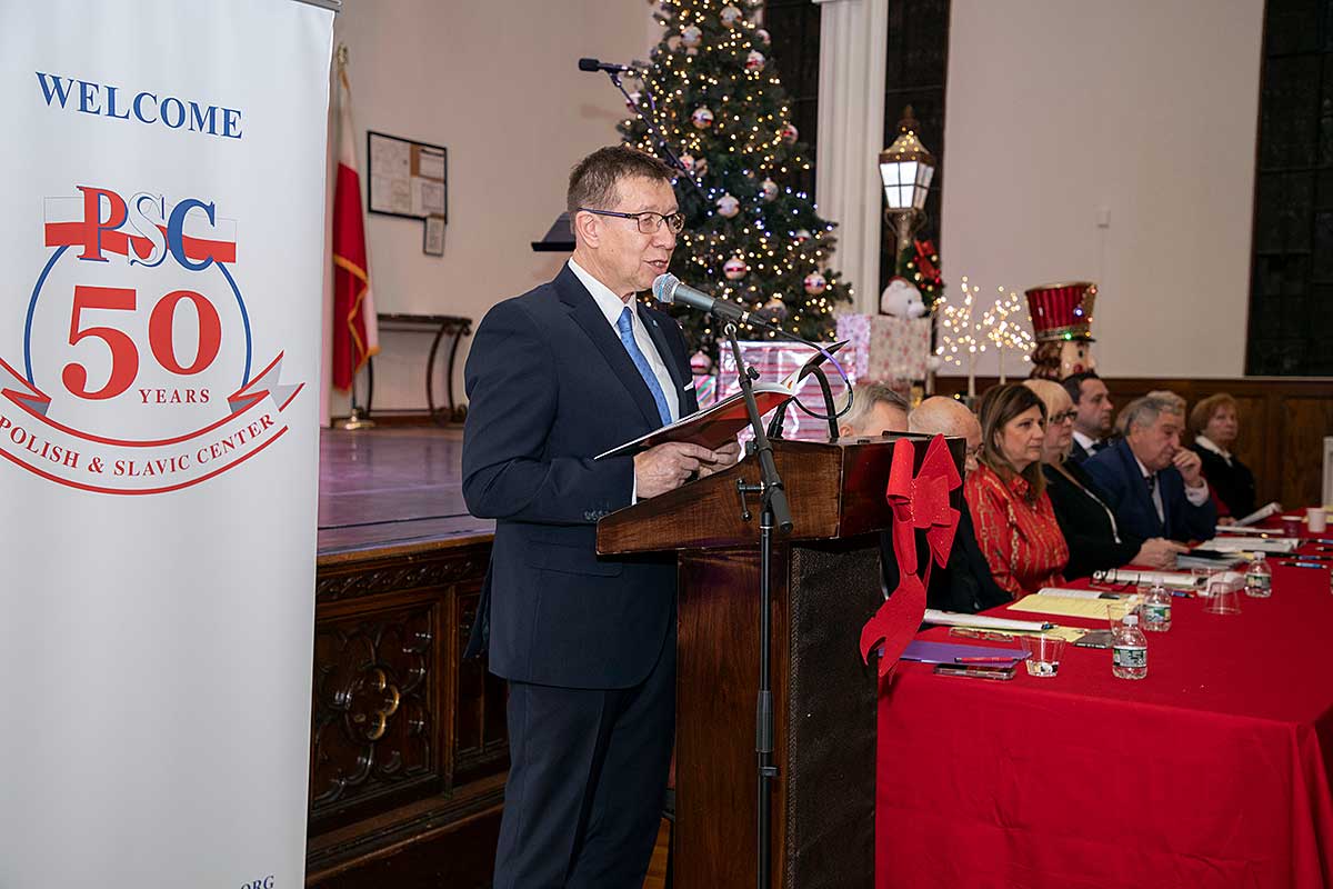 Po części oficjalnej zebrania sprawozdawczo wyborczego Agnieszka Granatowska – dyrektor wykonawczy przywitała wszystkich przyjaciół, sympatyków i liderów organizacji polonijnych, którzy ten wyjątkowy świąteczny wieczór postanowili spędzić wspólnie z przedstawicielami Centrum Polsko-Słowiańskiego. Agnieszka Granatowska złożyła życzenia świąteczne i podziękowała wszystkim pracownikom za ciężką codzienną ale jakże owocną pracę. Spotkanie przebiegało w iście rodzinnej atmosferze, rozmowom towarzyskim nie było końca a na twarzach wszystkich zebranych gościł świąteczny uśmiech.
