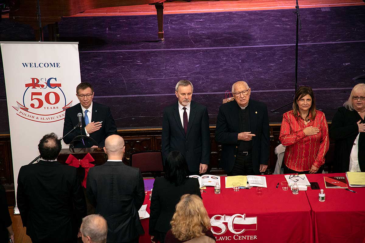 Zgromadzonych powitał prezes Rady Dyrektorów pan Marian Żak. Po odśpiewaniu hymnów, ks. Józef Szpilski, członek Rady Dyrektorów z najdłuższym stażem, poprowadził inwokację nawiązując w niej do bogatej, 50-letniej historii Centrum Polsko-Słowiańskiego.