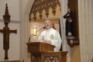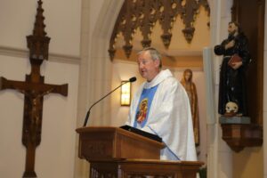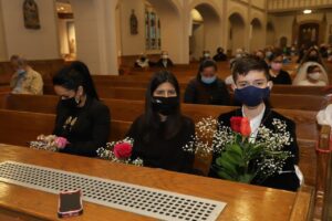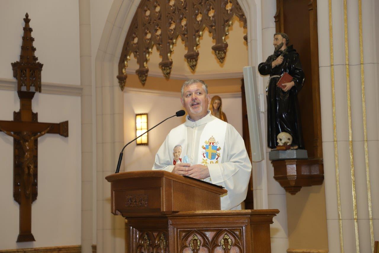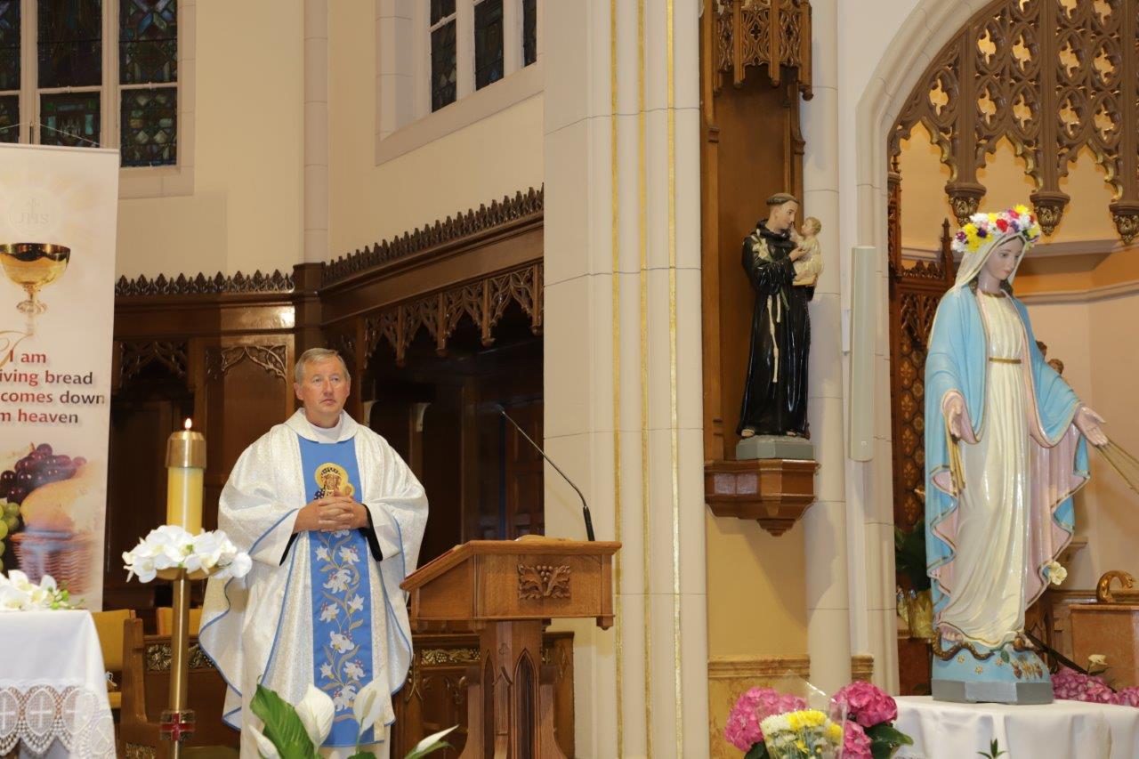 W uroczystej mszy świętej w języku angielskim uczestniczyli reprezentanci polskich i filipińskich organizacji działających na terenie parafii, dzieci które w tym roku przyjęły 1-szą Komunię św. wraz z rodzinami, siostry z Holy Family of Nazareth. “Wierzę, że nowa figura Matki Bożej będzie świadectwem naszej katolickiej wiary i nabożeństwa do Matki Bożej.” zaznaczyl o. Mirosław Podymniak OFM Conv, obecny proboszcz parafii św. Wojciecha. O. Miroslaw jest 22 proboszczem w historii tej parafii. Swoją posługę rozpoczął 1 września 2014 roku – jako administrator, a od 1 marca 2015 roku pełni role proboszcza tej parafii.