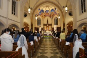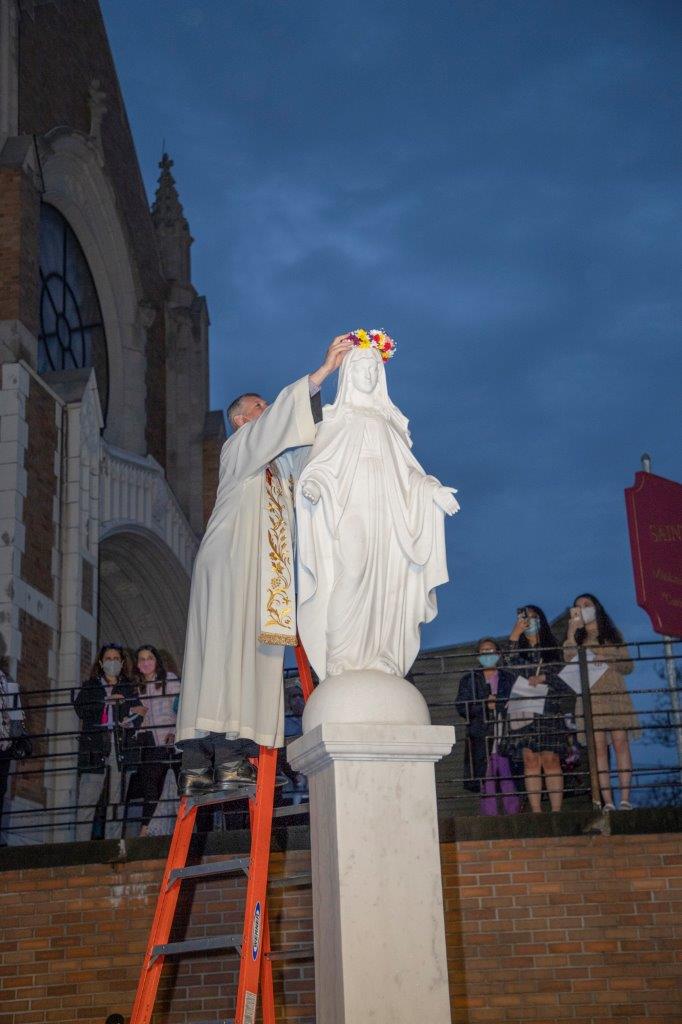 W tym roku, kiedy obostrzenia związane z pandemią nieco zelżaly, uroczystość koronacji pomnika Najświętszej Panny wypadła 3 maja w święto Matki Boskiej Królowej Polski. Ze względu na zmiany demograficzne dzielnicy Elmhurst w życiu tej polskiej parafi uczestniczą również inne grupy etniczne. Msza koncelebrowana była przez O. Lucjana Szymańskiego wspólnie z franciszkanami, którzy rezydują przy parafii św. Wojciecha.