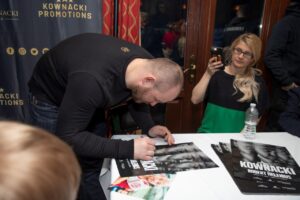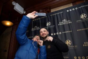 Kibice jak zwykle dopisali. “Babyface” chętnie pozował do zdjęć, rozdawał autografy na zdjęciach, plakatach, rękawicach bokserskich, koszulkach, szalikach i gadżetach z logo AK. W czasie spotkania rozegrano loterię, kibice którym dopisało szczęście wygrali miedzy innymi koszulki boksera oraz bilety na walkę.