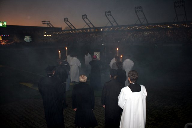 Tym razem zamiast 24 piłkarzy na murawę stadionu wyszło 150 spowiadających księży.