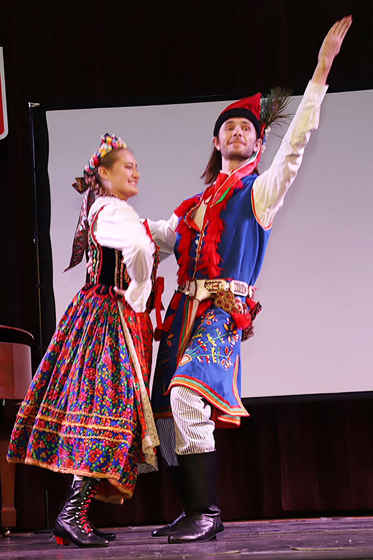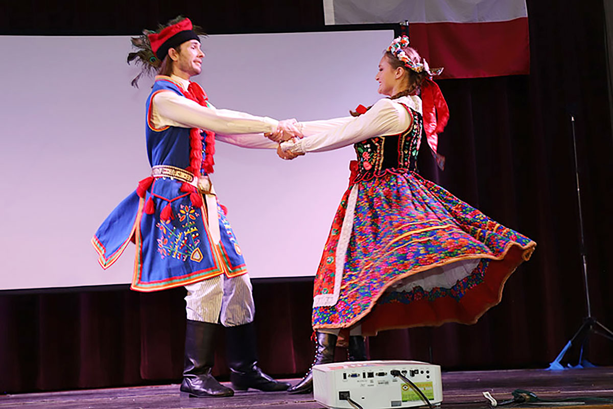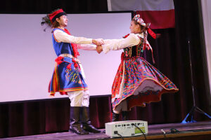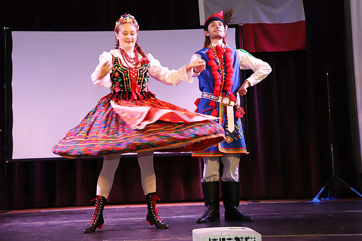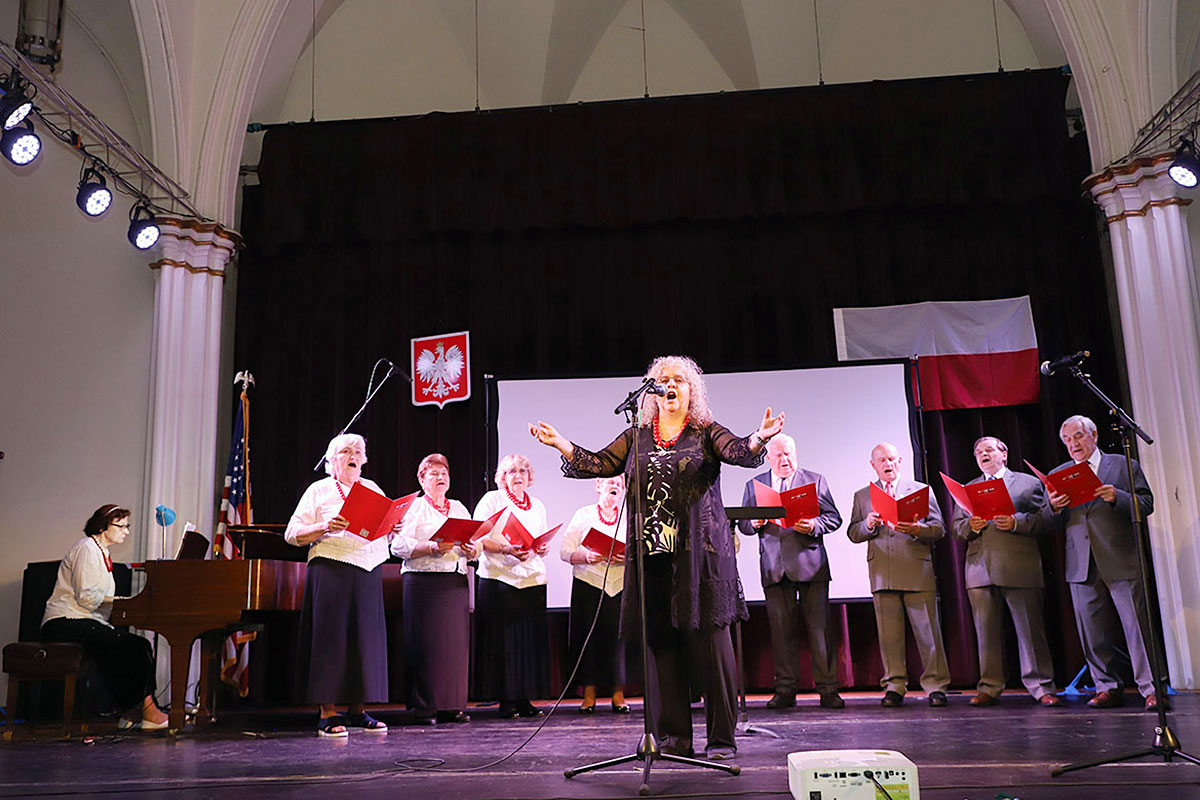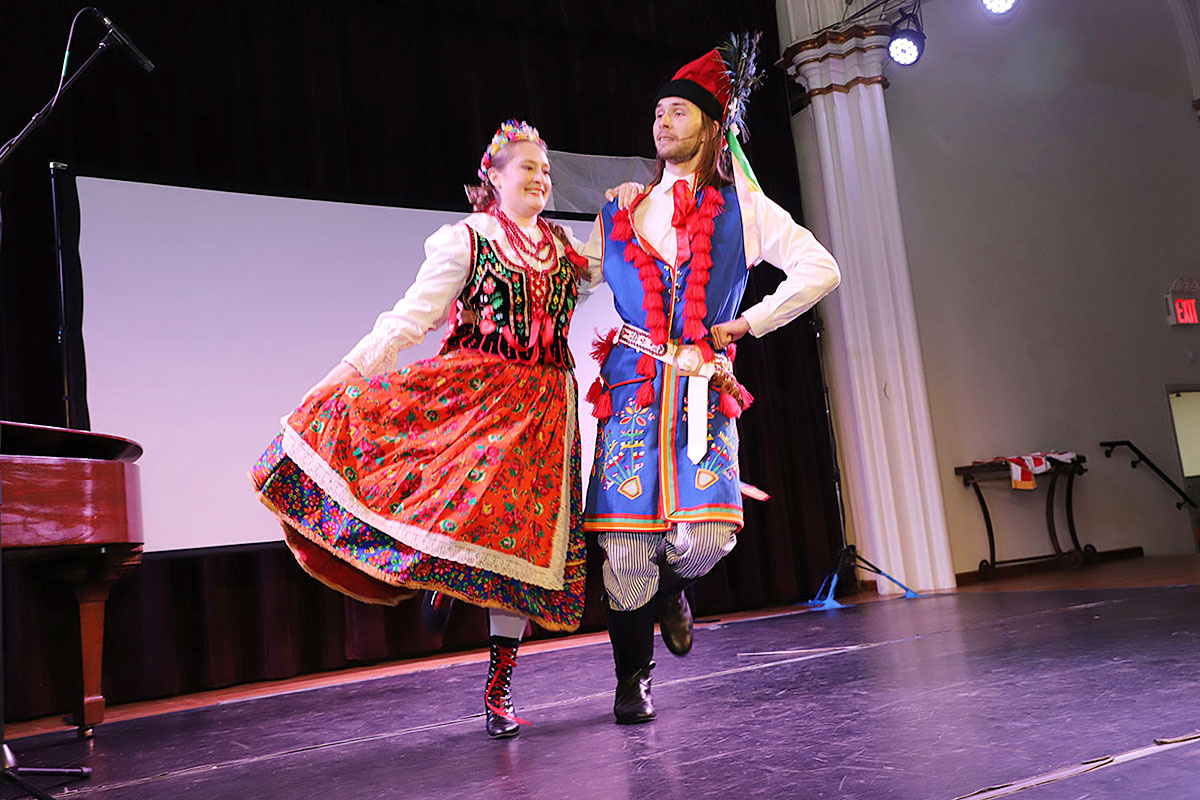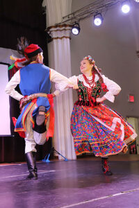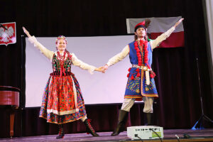 Nie zabrakło również występu Polish-American Folk Dance Company pod kierownictwem Andrzeja Buczka, który wprowadził na scenę taneczną energię i barwny folklor.