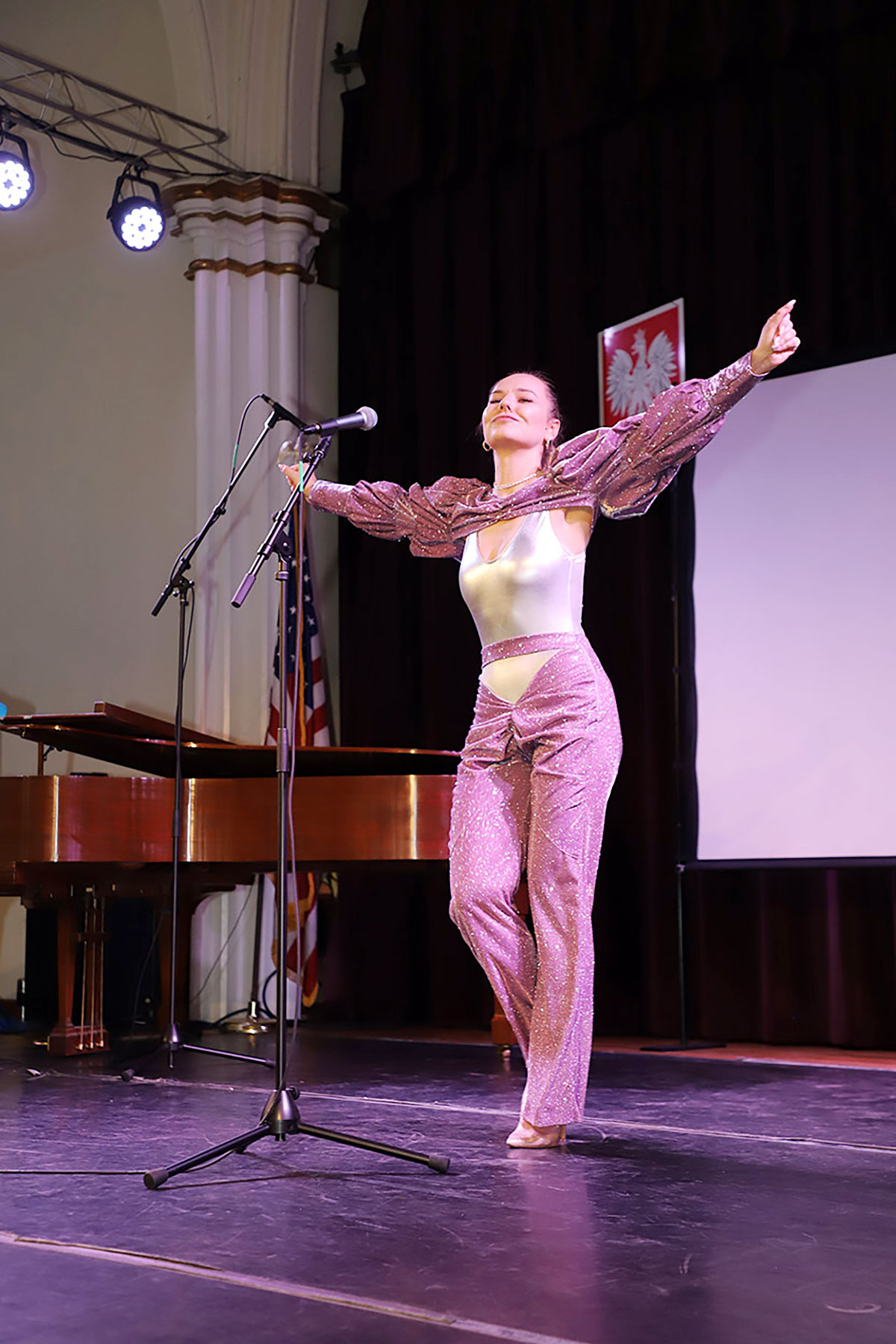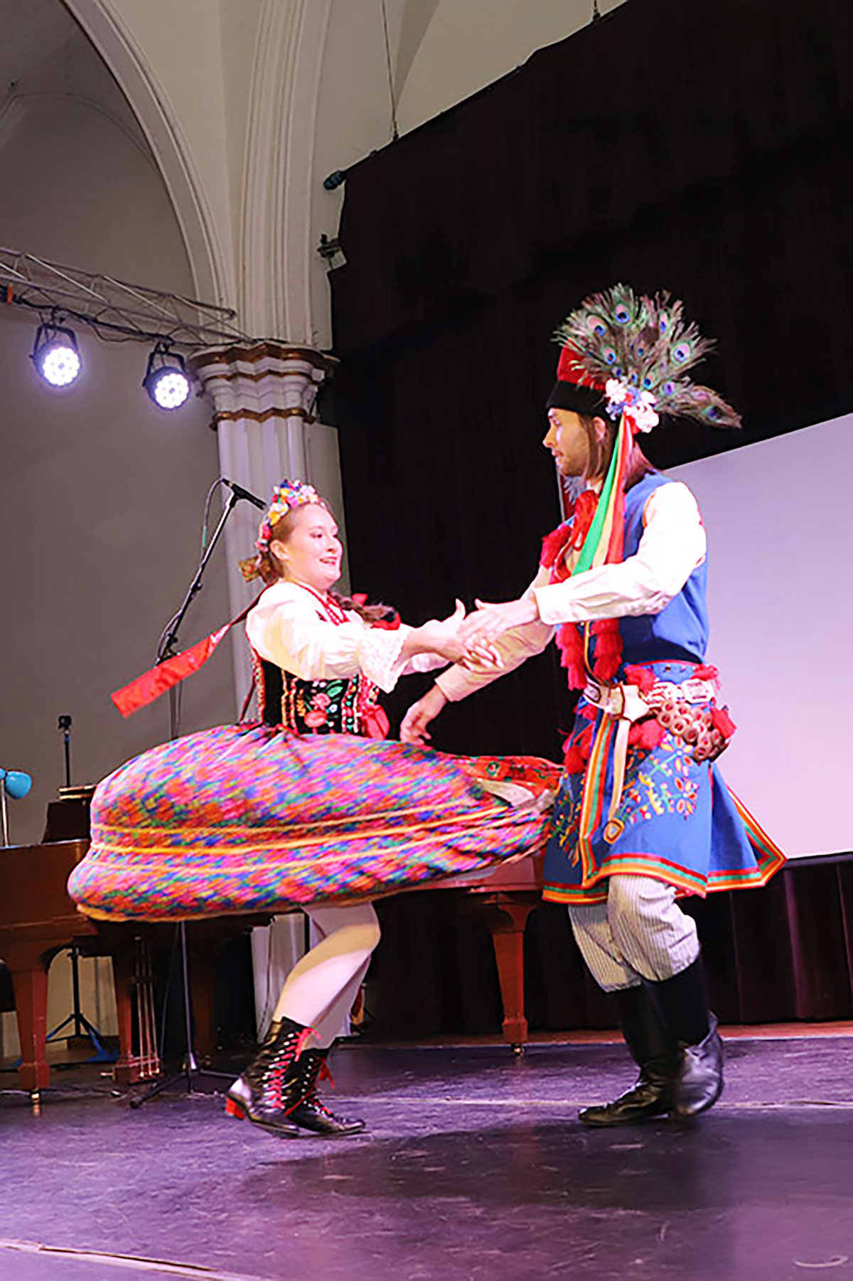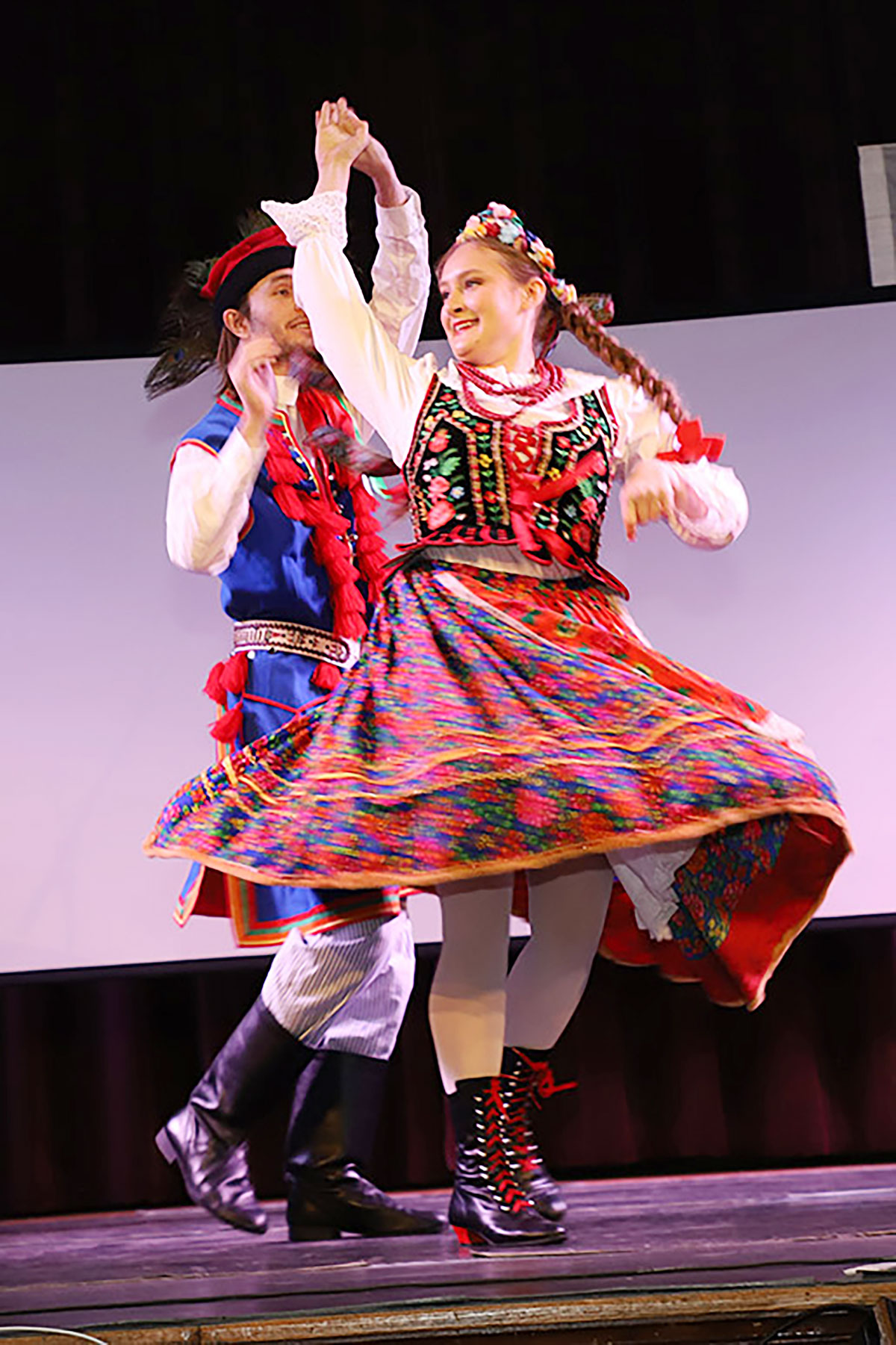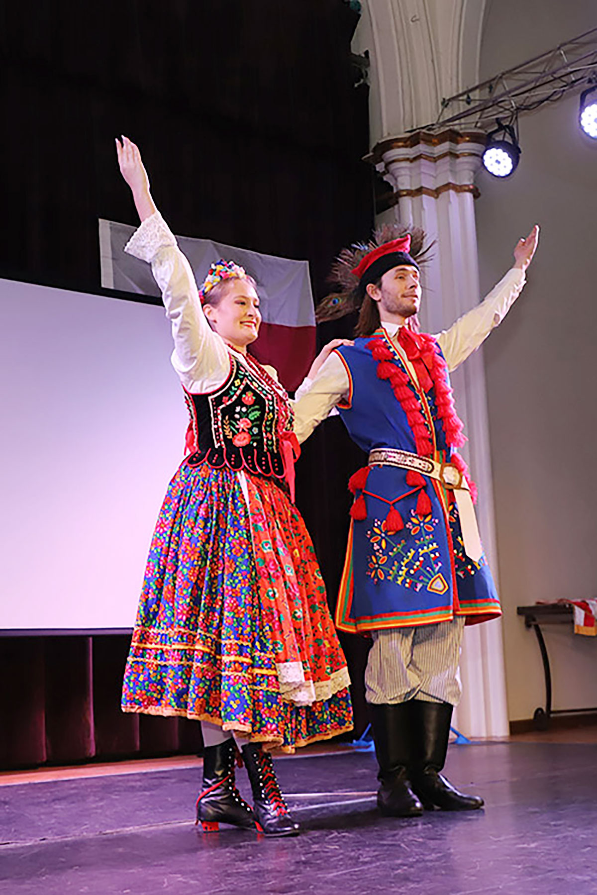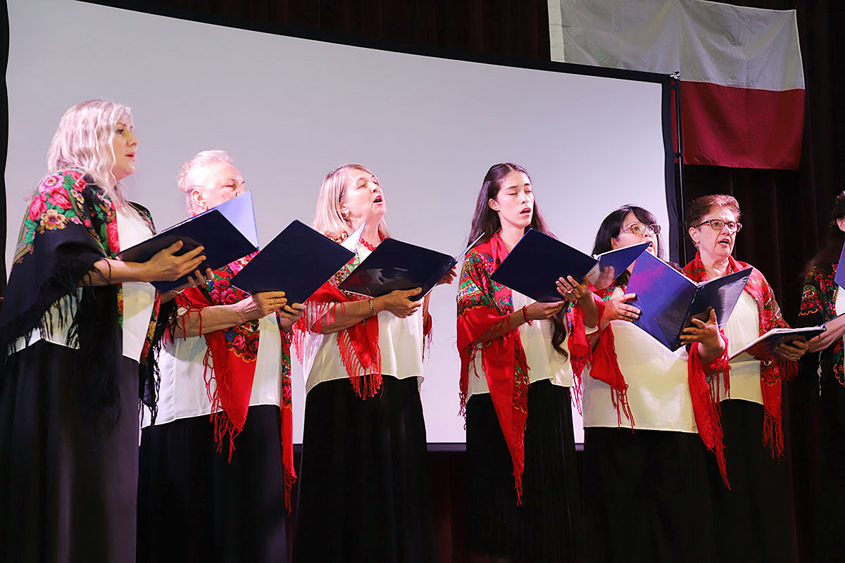 Nie zabrakło również występu Polish-American Folk Dance Company pod kierownictwem Andrzeja Buczka, który wprowadził na scenę taneczną energię i barwny folklor.