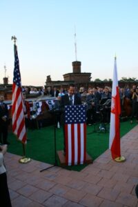 W czasie wieczornego spotkania na Kopcu Kościuszki przy dźwiękach niezapomnianych szlagierów jazzowych – muzyki Ameryki – kilkuset zaproszonych gości świętowało Independence Day. Tradycyjnie spotkanie zakończył pokaz fajerwerków.