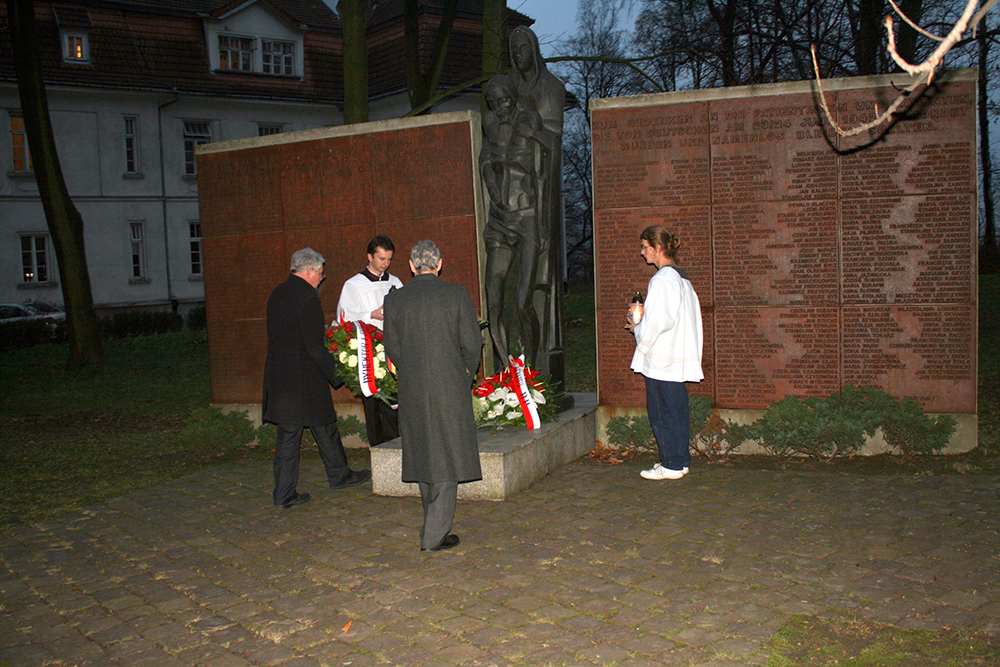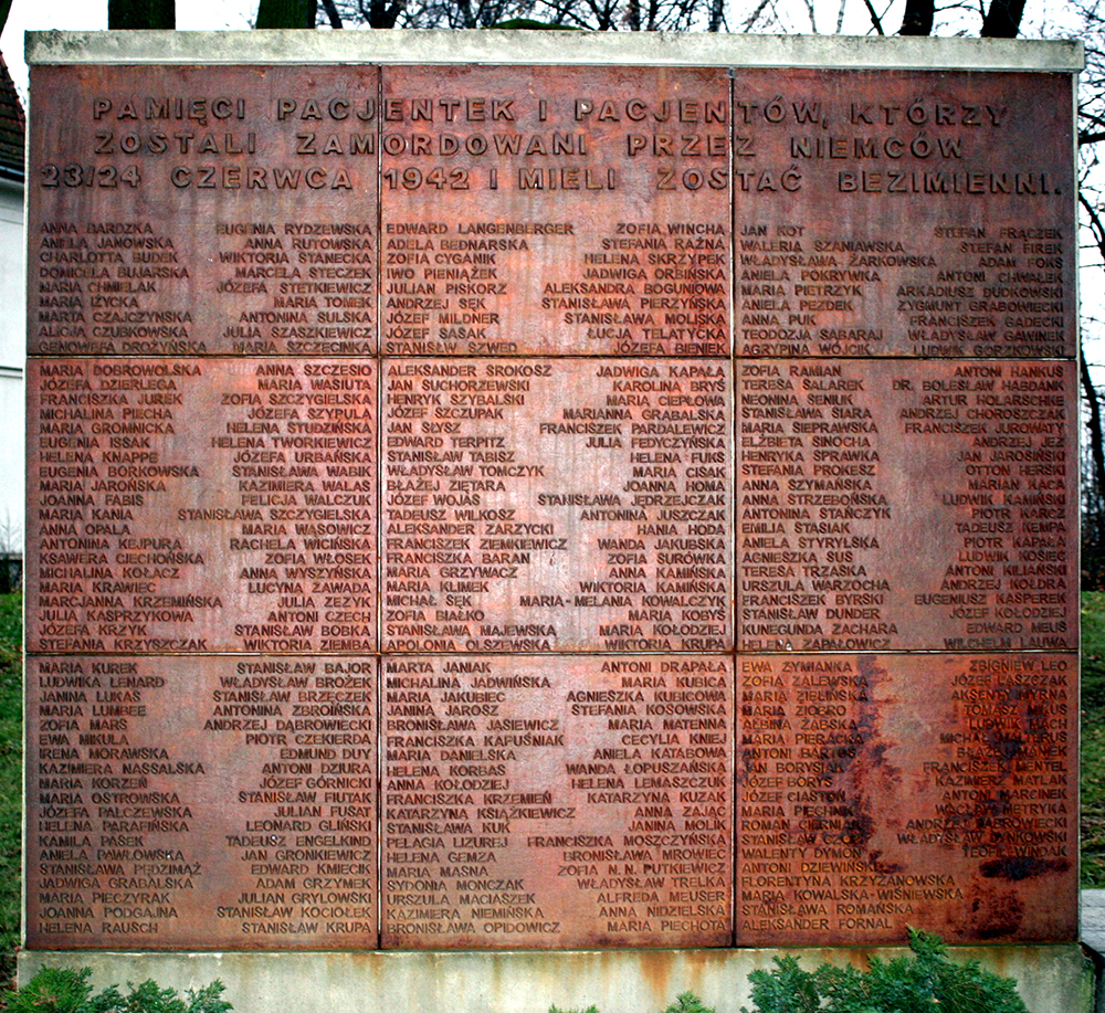 Niemcy wymordowali wszystkich 566 pacjentów wywożąc ich do niemieckich obozów zagłady Auschwitz i Treblinka. 30 osób nie nadających się do transportu zostało uśmierconych na miejscu zastrzykami z fenolu i pochowanych na przyszpitalnym cmentarzu. Dzięki odwadze personelu szpitala z pogromu uratowała się tylko jedna osoba – pani Waleria Białońska. Do dziś sprawcy tego mordu nie zostali osądzeni. W postępowaniu sądowym nie znaleziono dostatecznych dowodów winy znanych z imienia i nazwiska oprawców – powiedział podczas wykładu okolicznościowego dr Andrzej Kowal, był dyrektor szpitala. W uroczystości uczestniczył Marszałek Senatu Bogdan Borusewicz, grupa kombatantów i przedstawiciel Muzeum AK.