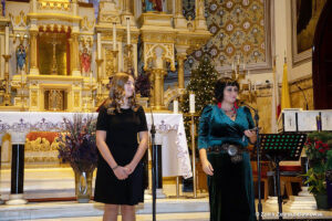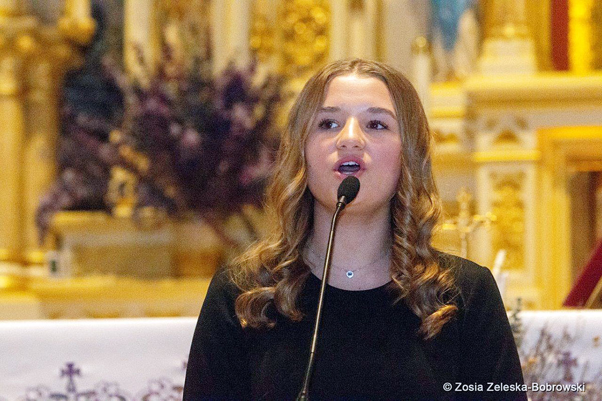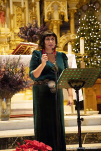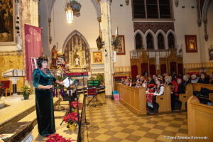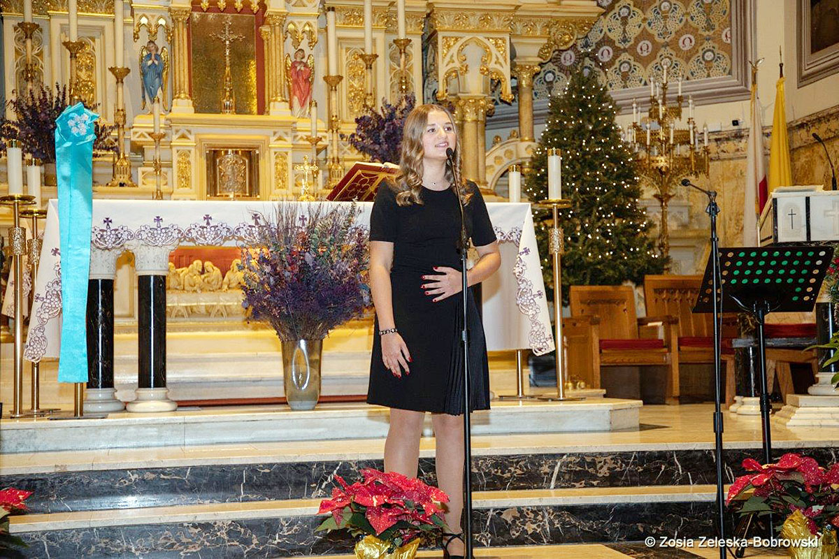 Na początek Małgorzata Staniszewska zaprezentowała dwie premierowe kolędy przy akompaniamencie kompozytora muzyki Jakuba Polaczyka pt “ Wigilijna Noc”, “Chrystus Pan narodził się “.
