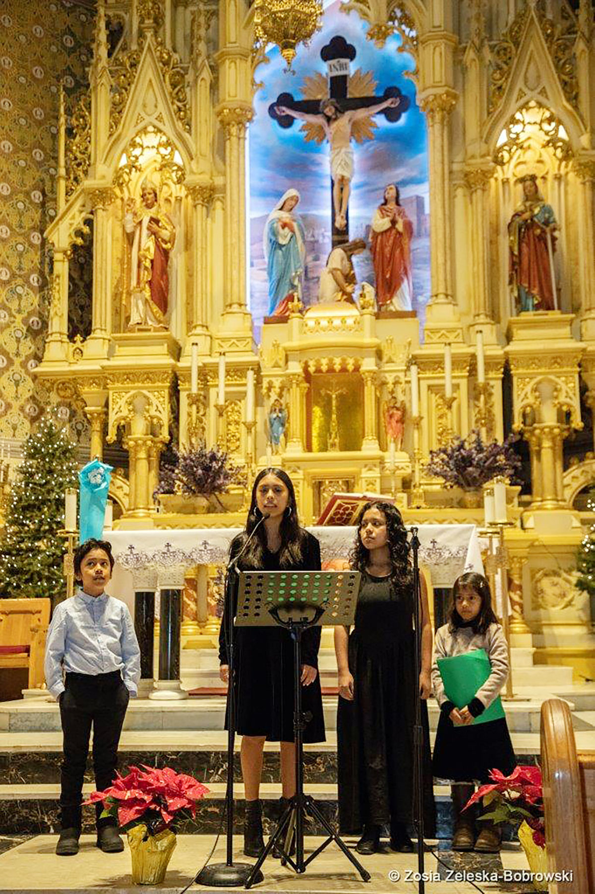 Dzieci z Parafii Św. Róży z Limy zaśpiewały pastorałki w języku hiszpańskim i angielskim: Maria Roldan – “Mi Burrito Sabanero”, Ruby Roldan – “The First Noel jn spanish” Gabriela Roldan – “The First Noel jn ebglish” oraz Rafael Roldan – “Noche de Paz”.