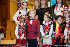 Następnie dzieci z zespołu Krakowianki i Górale wystąpiły z utworami pt.” Śliczna panienka”, “Oj maluśki maluśki”, “Dzisiaj w Betlejem” oraz Andrzejek Michoń – “Dnia jednego o północy”, Monica Chibowski – ‘’Mary did you know “, “Gdy śliczna panna syna kołysała” , “Zaśnij dziecino “, Emilia Idec razem z zespołem – “Od serca do ucha”.