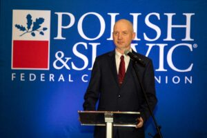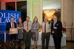 Następnie Dyrektor Wykonawcza Centrum Polsko-Słowiańskiego, Agnieszka Granatowska podziękowała władzom Unii za sponsorowanie wielu imprez. Towarzyszyli jej: Paweł Pachacz, Wiceprezes, Ksiądz Józef Szpilski, Wiceprezes, Bożena Konkiel i Zbigniew Solarz, Członkowie Rady Dyrektorów CPS.
