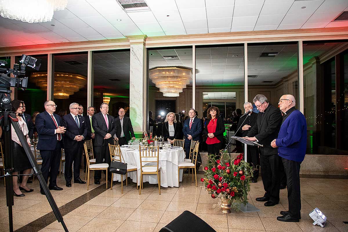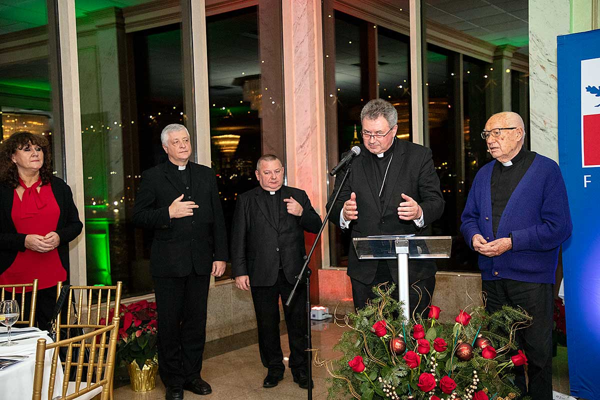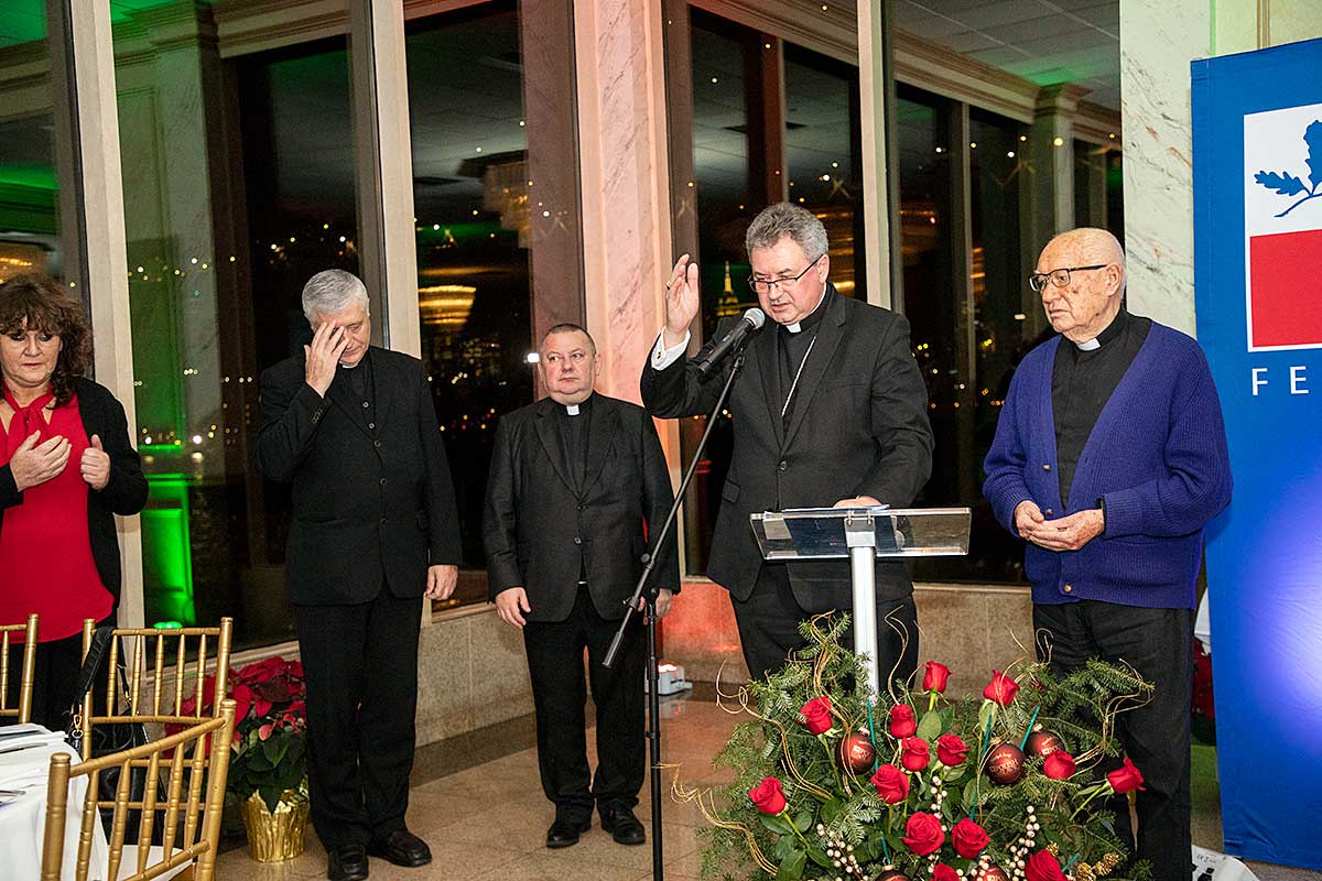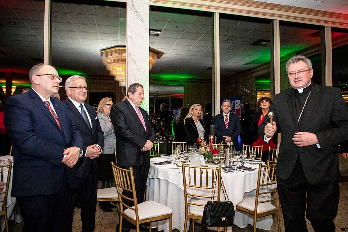 Następnie ksiądz Biskup Witold Mroziewski w otoczeniu księży z parafii Kościoła Św. Stanisława Kostki na Greenpoincie, proboszcza Grzegorza Markulaka CM i księdza Józefa Szpilskiego CM oraz Kościoła Św. Cyryla i Metodego, księdza Jana Szylara, CM, odmówił modlitwę i poświęcił opłatki leżące na stołach.