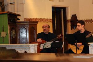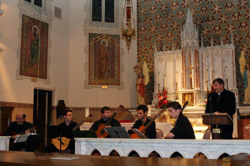 Wzięły w nim udział dwie grupy studentów z Wydziału Muzyki w C.W. Post College na Long Island University: C.W. Post Madrigal Singers i C.W. Post Guitar Ensemble. Madrigal Singers wykonywali utwory z okresu średniowiecza, renesansu i baroku, wśród nich pieśni Gregoriańskie, oraz świeckie kompozycje Orlando di Lasso, Johna Dowlanda, Thomasa Morleya i Giovanniego Gastoldiego. Artyści wystąpili w strojach z epoki. Dyrektorem grupy jest Jeffrey Johnson. Utwory wokalne przeplatane były kompozycjami na zespół gitar klasycznych, które zostały wykonane przez C.W. Post Guitar Ensemble. Grupa ta specjalizuje się zarówno w muzyce Renesansu jak i nowoczesnej. Gitarzyści wykonali utwory Michaela Praetoriusa, Clauda Debussyego, Paula Hindemitha, a także Paula Simona, Johna Lennona i Paula McCartneya. Dyrektorem grupy jest Harris Becker.
