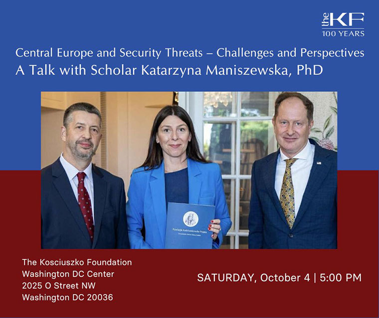 Join us for a timely and insightful lecture by Katarzyna Maniszewska, PhD - the KF's scholarship alumna and expert on terrorism, radicalization, and European security: Central Europe and Security Threats: Challenges & Perspectives