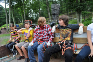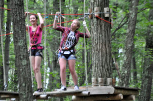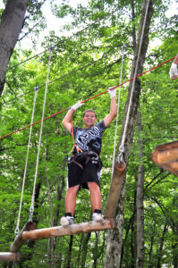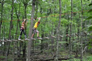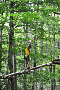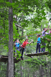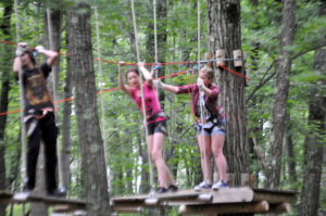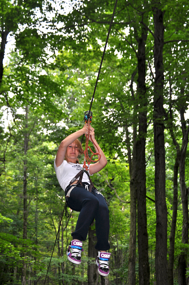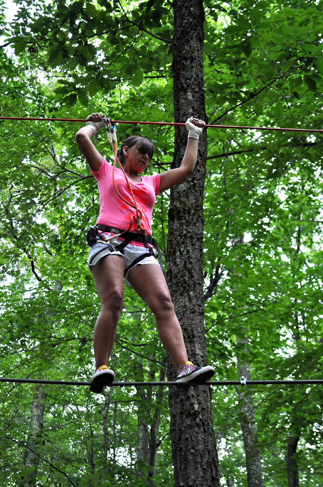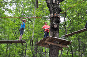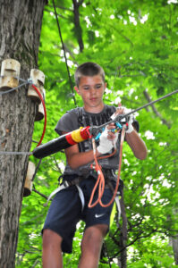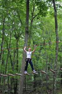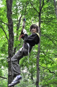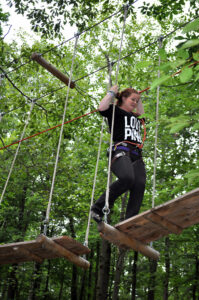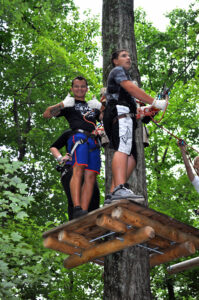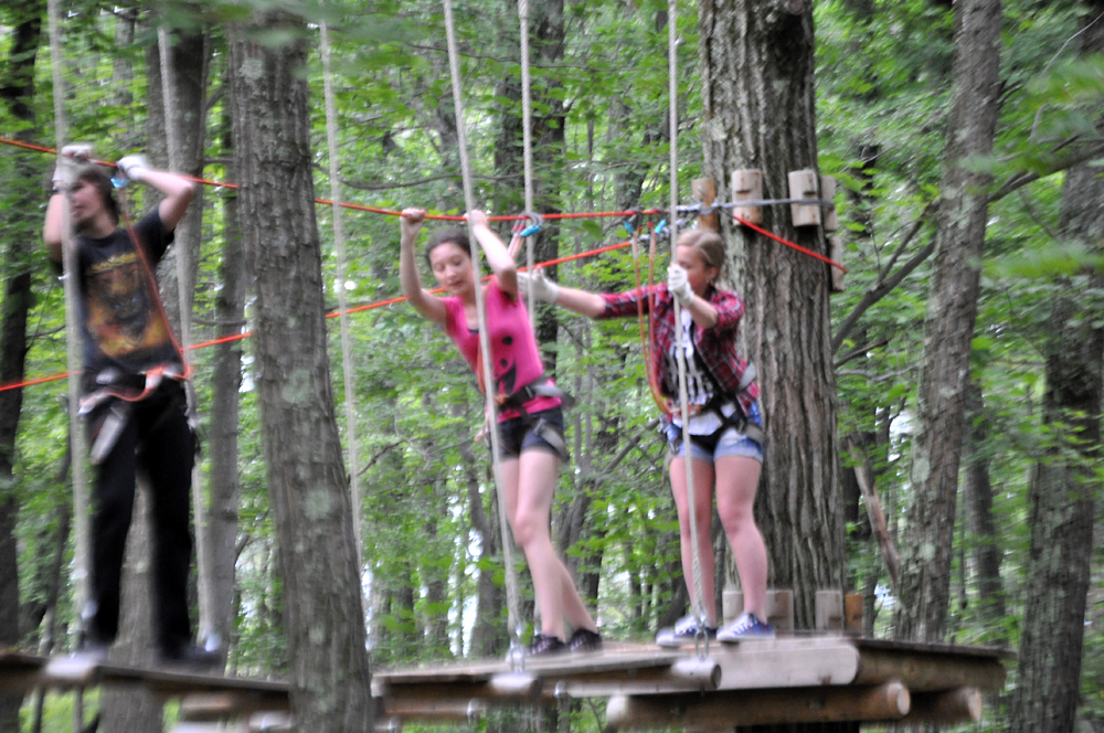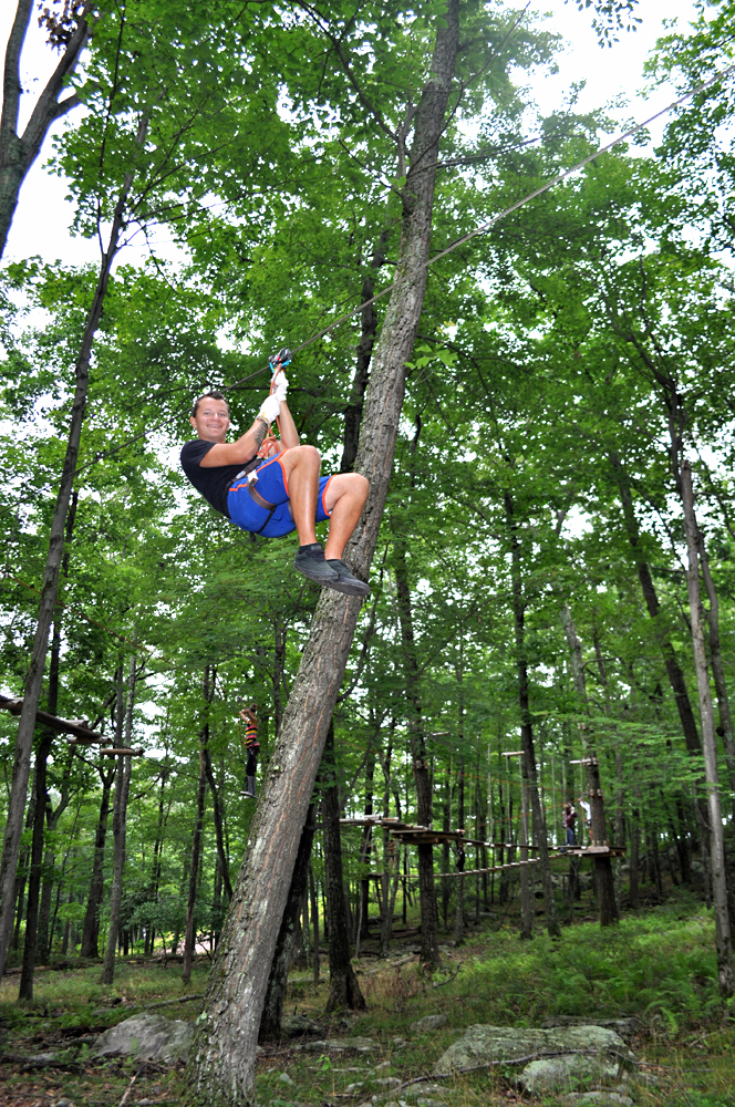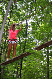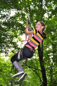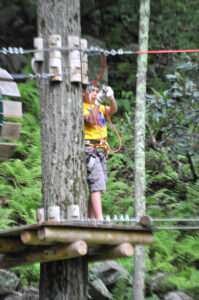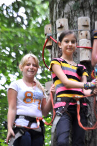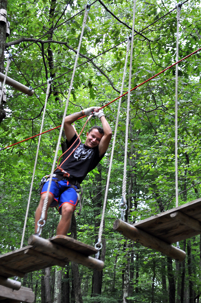 Dzieciaki zapięte w uprząż do wspinaczki, przeszły fachowe szkolenie bezpiecznego poruszania się po przeszkodach, przygotowanych na wysokości 15-20 ft. W trakcie trzygodzinnej wyprawy przeżyliśmy moc niezapomnianych wrażeń. Przechodziliśmy po linowych mostach, chwiejących belkach i kładkach, stromych drabinach i wiszącej siatce linowej. Najważniejszym, a zarazem najmocniejszym akcentem były mrożące krew w żyłach zjazdy linowe, gdyż było bardzo, bardzo szybko i wysoko.