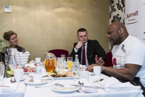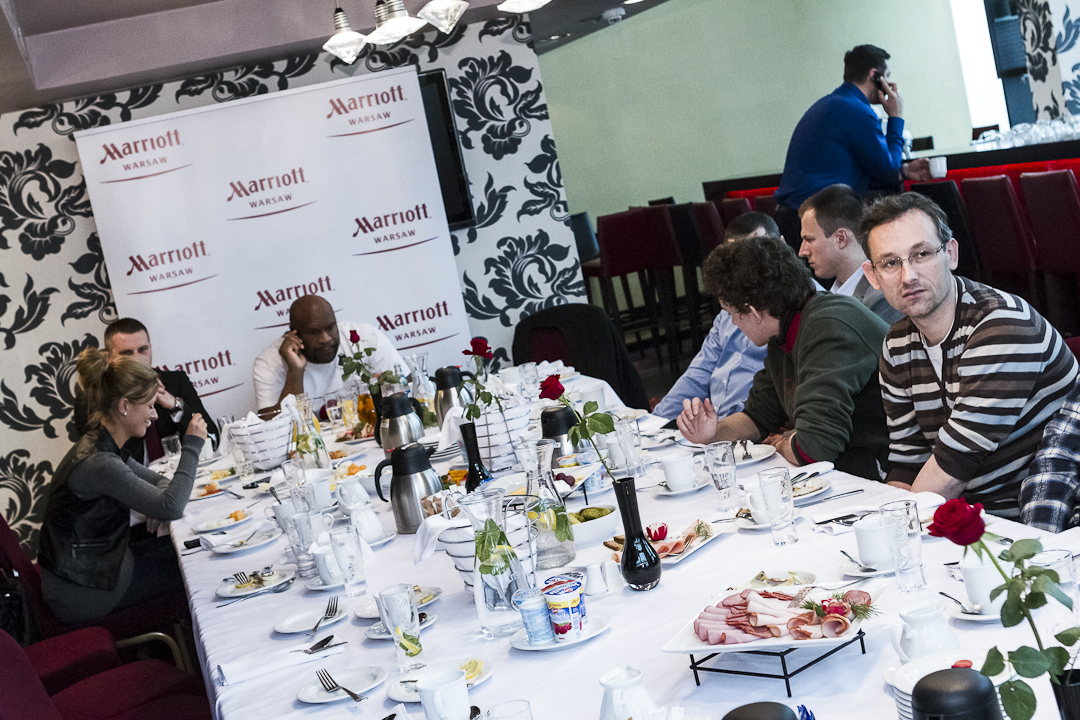 Śniadanie przebiegło w miłej, przyjacielskiej atmosferze. Bob Sapp jak zwykle tryskał humorem. Postanowił nawet, że opowie Mariuszowi Paszkielowi, Dyrektorowi ds. Handlowych Hotelu Marriott kilka śmiesznych historyjek z jego wojaży po świecie. Wspominał m.in. o czasach bycia na topie w Japonii i tym, jak ludzie reagowali na jego widok w innych krajach.