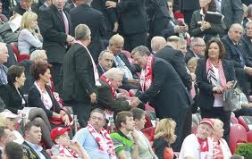 Na meczu z Czechami podczas hymnu rozciągnięta zostanie biało-czerwona flaga, również zasiądą w loży ViP by kibicować Polaków zaproszeni przez prezydenta piłkarskiej federacji Michaela Platiniego prezydenci Polski: Bronisław Komorowski i Czech Vaclav Klaus, byli prezydenci Aleksander Kwaśniewski i Lech Wałęsa. W 96 osobowej loży oznaczonej symolem (L3) zasiądą także premier Donald Tusk, książę Monako Albert, wicepremier Rumuni Bela Marko a także zaproszeni ambasadorzy, politycy i znamienici goście.