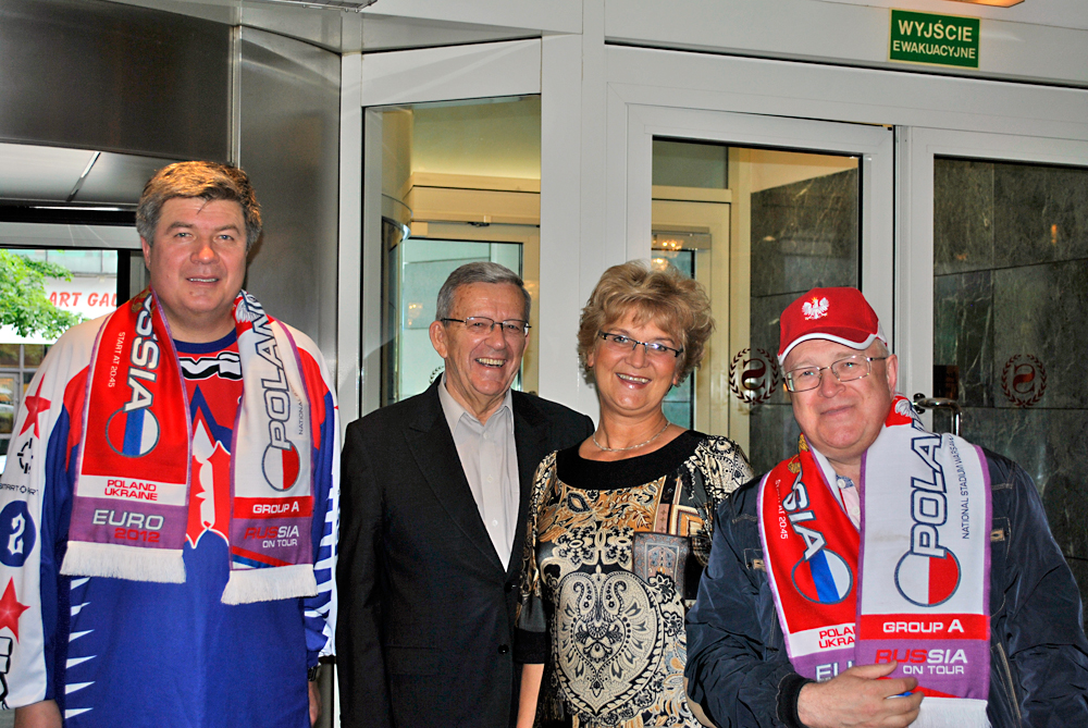 Musimy pamiętać, że naszym 12 zawodnikiem są kibice i to oni stwarzają wspaniałą atmosferę Euro 2012 w myśl “wszyscy jesteśmy gospodarzami”. Kibicują nie tylko na stadionach, w strefach kibicach, na ulicach, czy w domach. Duża grupa prawdziwych kibiców pojawiła się po meczu Polska – Rosja pod hotelem Hyatt, gdzie oskandowała głośno “Dziękujemy! Dziękujemy! Nikt nam nie powie że nie zagramy w Kijowie!… Kuba Błaszczykowski!… Robert Lewandowski!.. Zawodnicy choć zmęczeni pomachali i podziękowali wytrwałym kibicom, a Franciszek Smuda uniósł ręce do góry i podziękował za wspaniały doping i wiarę.