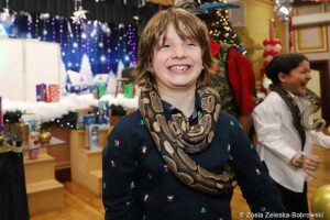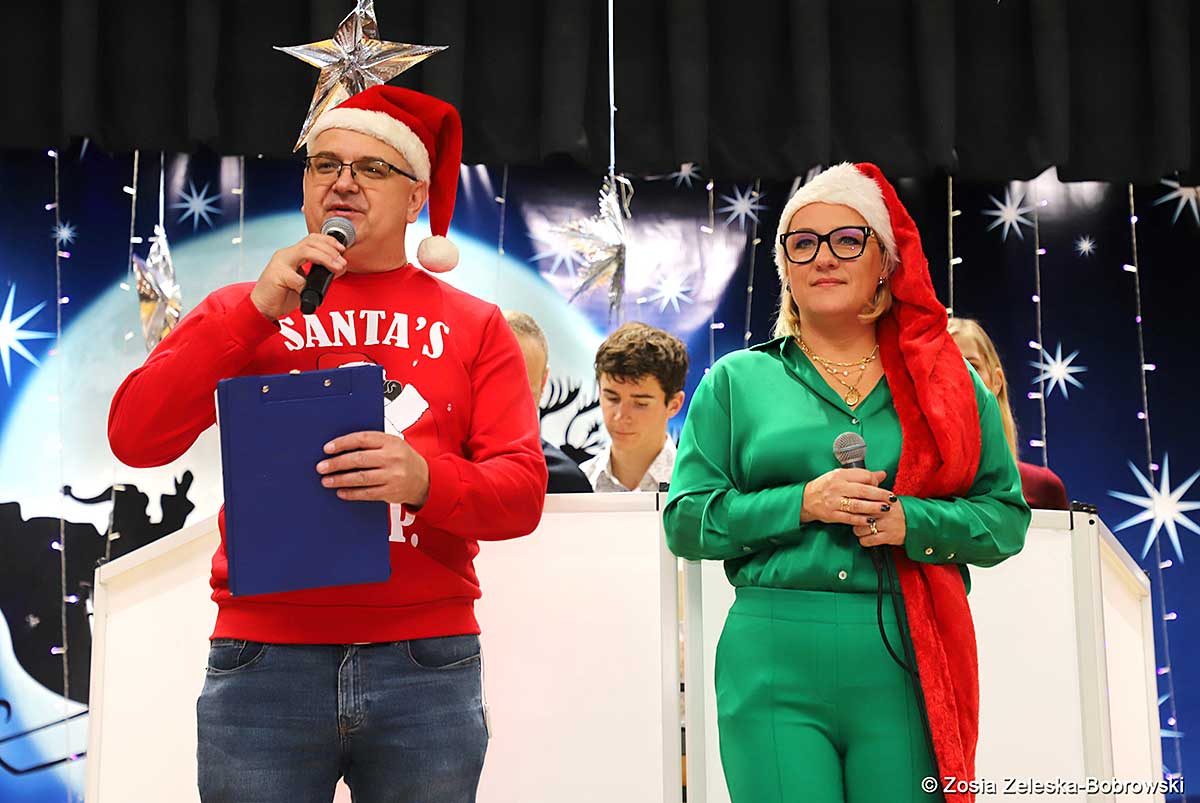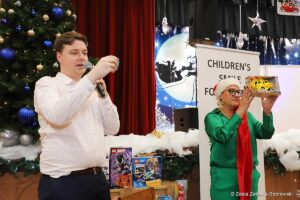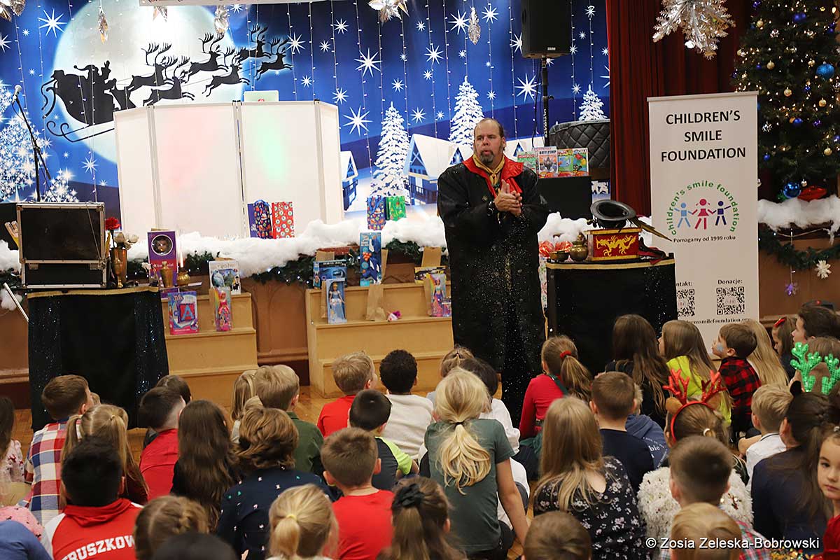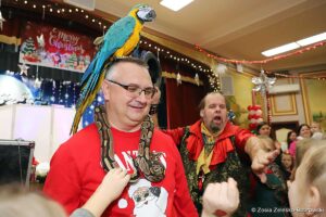 Imprezę prowadziła Joanna Gwóźdź, prezes Children’s Smile Foundation wraz z jej dyrektorem wykonawczym Wojciechem Maślanką / Foto: ZOSIA ŻELESKA-BOBROWSKIOgromną furorę zrobił magik, który przez prawie godzinę czarował dzieci swoimi sztuczkami. Maluchy były zachwycone nie tylko jego pokazem, ale również gołębiami, papugą i przede wszystkim wężami, które miał ze sobą. Wiele z nich chętnie zakładało je na swoje szyje i pozowało do zdjęć. Fotografowano się także ze Świętym Mikołajem, któremu towarzyszyła Śnieżynka oraz kilkanaście Elfów. Okazało się, że nie tylko obdarował on dzieci i młodzież prezentami, ale również chętnie włączał się z nimi do zabawy. Pod koniec spotkania przeprowadzono loterię fantową z atrakcyjnymi nagrodami zarówno dla dzieci jak i dla dorosłych.