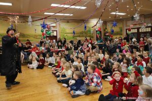 Zorganizowane przez Children’s Smile Foundation Mikołajki, jak zawsze cieszyły się dużym zainteresowaniem wśród dzieci / Foto: ZOSIA ŻELESKA-BOBROWSKI Był pokaz magika, konkurs śpiewania kolęd i świątecznych piosenek, a także konkurs plastyczny. Każde dziecko, które zdecydowało się wykazać swoimi zdolnościami wokalnymi otrzymywało nagrodę. Również dużym zainteresowaniem cieszył się konkurs związany z malowaniem świątecznych aniołków. Najciekawsze prace zostały nagrodzone różnymi upominkami.
