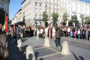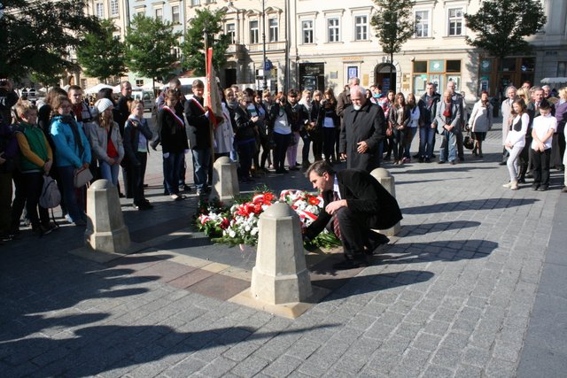 Jak co roku na płycie krakowskiego Rynku Głównego spotkały się delegacje miast, towarzystw i szkól im Tadeusza Kościuszki. Do licznie zebranej na rynku młodzieży przemówił Prezes Komitetu Kopca Kościuszki prof. Mieczysław Rokosz kwiaty złożyli również prezes Fundacji im Kościuszki Tomasz Otrębski i przedstawiciel Muzeum AK Robert Springwald.
