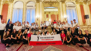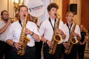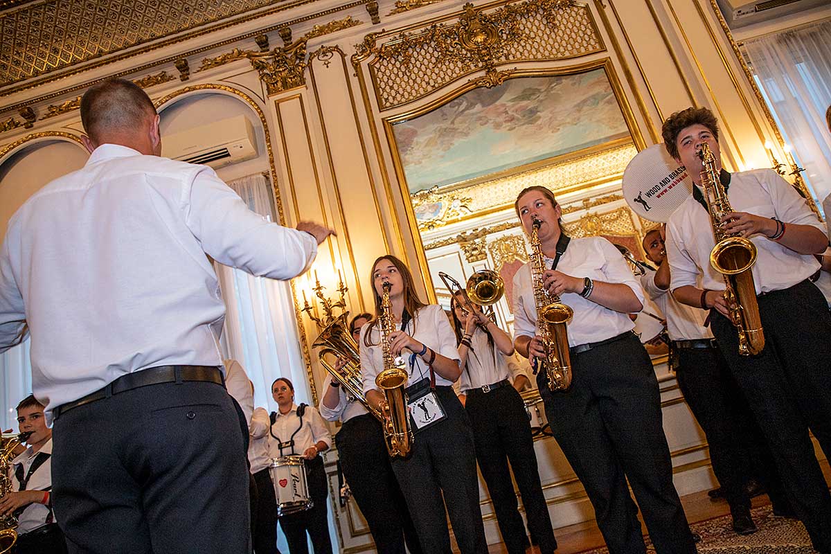 Zespół przyjechał do USA na zaproszenie World Association of Marching Show Bands aby wziąć udział w finale Mistrzostw Świata 2023 odbywających się w Buckhannon, West Virginia w dniach od 17 do 24 lipca. Przyjechali w składzie 47 osób: 35 grających 8 tańczących 3 opiekunów i prowadzący zespół. Finał Mistrzostw świata przeszedł do pięknych kart muzycznej historii, skończyli go z trzema złotymi medalami w kategoriach Concert, Field Parade oraz Parade of Nations. Tuż przed Mistrzostwami wzięli udział w konkursie muzycznym Rasteder Musiktage w Niemczech, w dniach 29.06. – 03.07.2023r. Potraktowali go jako element intensywnych przygotowań i próbę generalną przed finałami WAMSB Championship 2023 – Buckhannon, WV. Z Rastede wrócili z “trofeami”, zdobyli tam 3 złote lokaty oraz 1 srebrną w konkurencjach Show Prelims, Show Finals, Concert Competition oraz Marching Competition. Po Mistrzostwach reprezentanci przejechali ze stanu West Virginia przez Waszyngton do Nowego Jorku i rozpoczęli część koncertową pobytu w USA. W środę orkiestra Wood@Brass Band wystąpiła w siedzibie głównej Organizacji Narodów Zjednoczonych na Manhattanie.