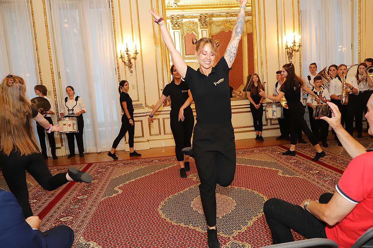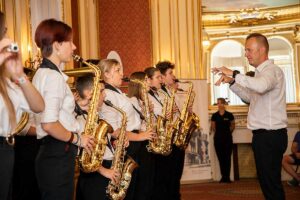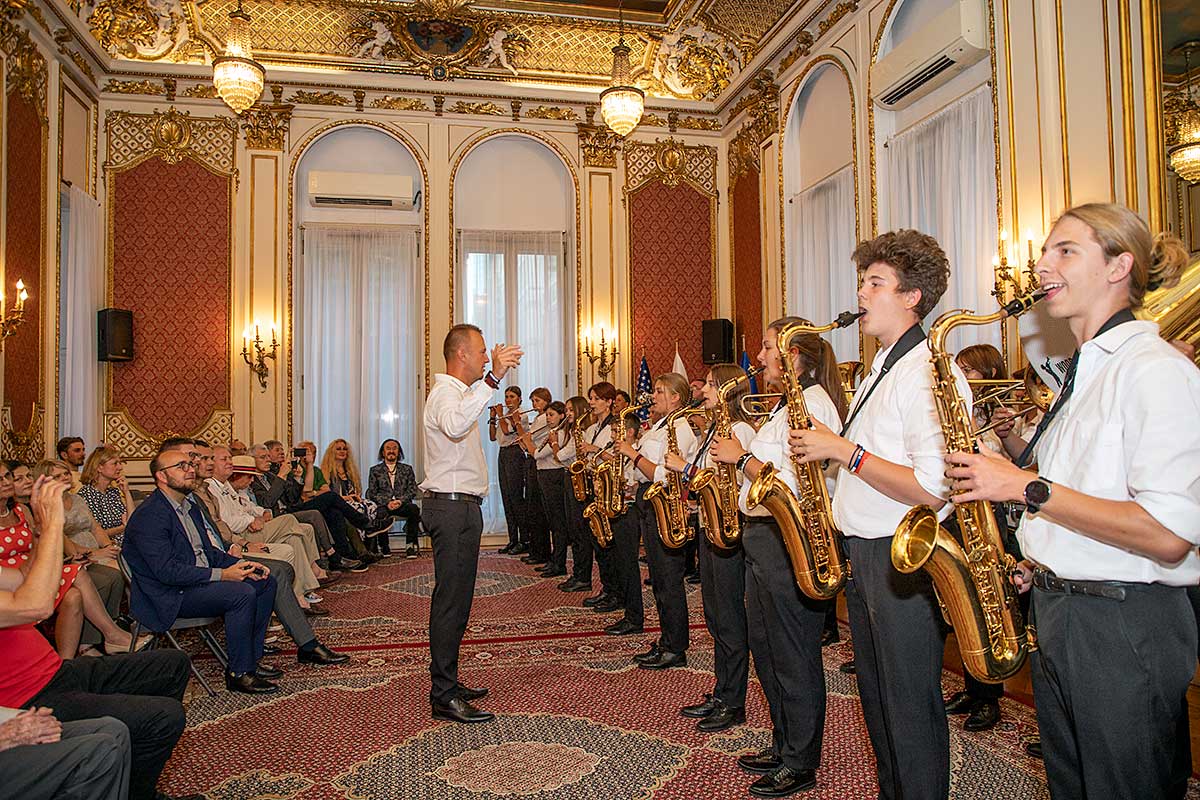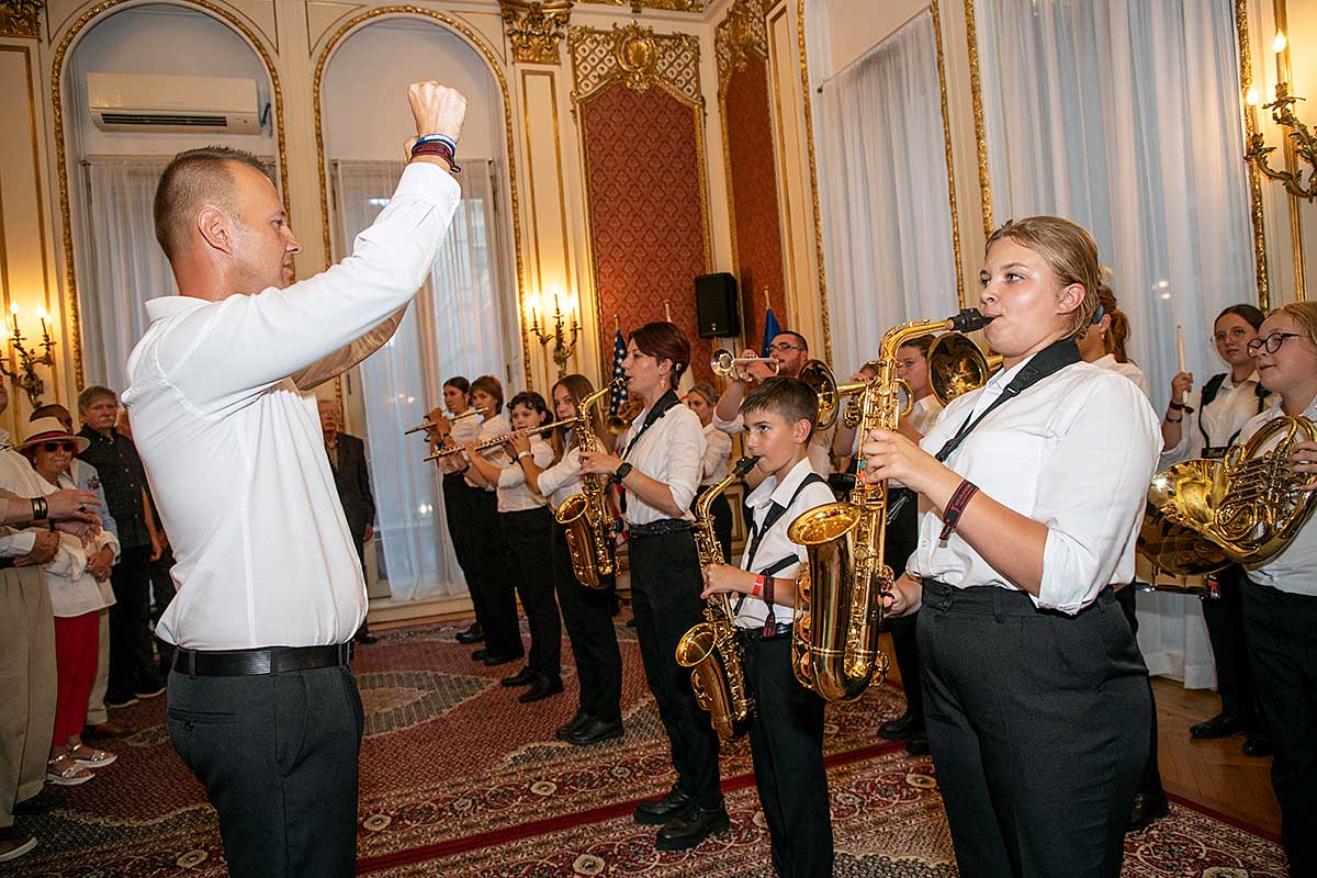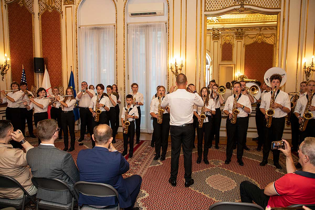 W piątek 28 lipca orkiestra wystąpiła w gościnnych progach polskiego Konsulatu. Gości powitał vice-konsul Mateusz Dębowicz. Pomimo upalnej pogody widzowie dopisali i przyjęli orkiestrę bardzo entuzjastycznie. W repertuarze był n.in. Hymn Polski, Rota, składanka melodii wojskowych. Oprócz orkiestry wystąpiła 8-mio osobowa grupa taneczna. Najmłodszy uczestnik orkiestry saksofonista ma 9 lat, najstarszą jest 24 letnia saksofonistka. Aż serce rośnie patrząc jaką mamy w Polsce uzdolnioną młodzież. Koncert zaszczycił swoją obecnością Stan Borys, legenda polskiej muzyki wraz ze swoją manager Anną Maleady któremu członkowie orkiestry zgotowali gorącą owację. Śpiewali również 200, 300 i 400 lat dla jednego z obecnych melomanów, Fryderyka Dammonta, który ukończył 100 lat i cztery miesiące.