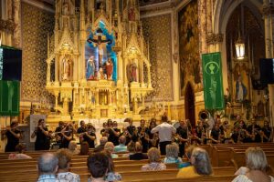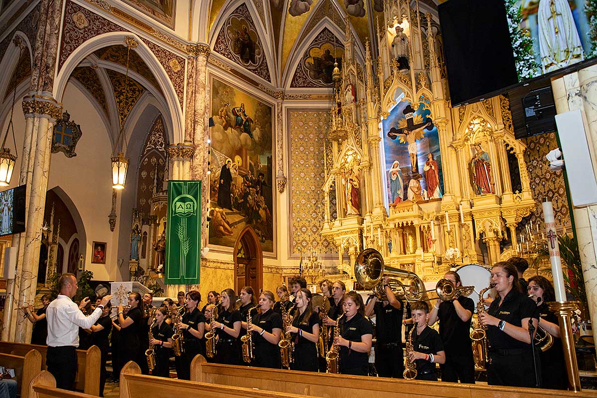 Natomiast w sobotę 29 lipca wystąpili na zaproszenie proboszcza, księdza Grzegorza Markulaka CM w Kościele Św. Stanisława Kostki na Greenpoincie. Mszę odprawiał i głosił kazanie ksiądz Henryk Michalski CM z Polski, koncelebrował zaś ksiądz Grzegorz Markulak CM. Na rozpoczęcie Mszy św. orkiestra zagrała “Barkę”, podczas podniesienia dwukrotnie wykonała “Intrudę” a następnie w czasie komunii utwory: “Bądźże pozdrowiona” oraz “U drzwi Twoich stoję Panie.”