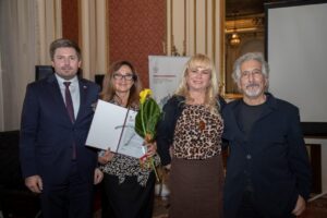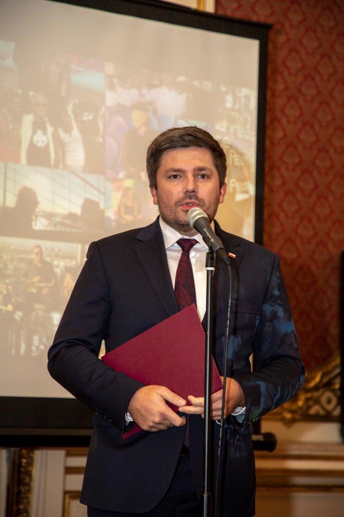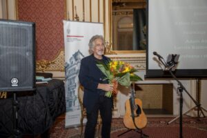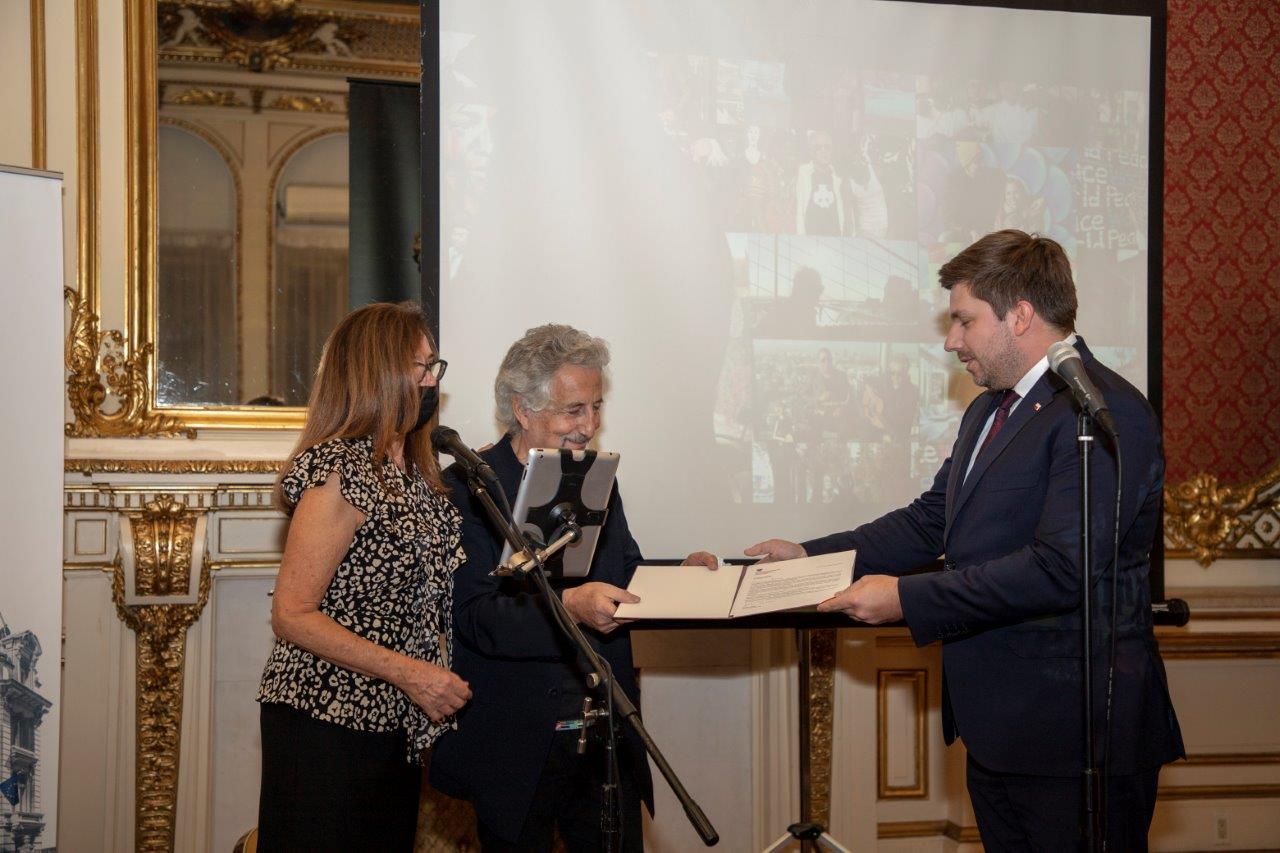 Następnie aktor Bartek Szymański wspaniale zaprezentował w dwóch językach wiersze autorstwa Anny Frajlich-Zając. To znakomita poetka i profesor na Columbia University nagrodzona wieloma prestiżowymi nagrodami. Po tak wspaniałym wstępie poetyckim na scenie pozostał Michał Hochman.