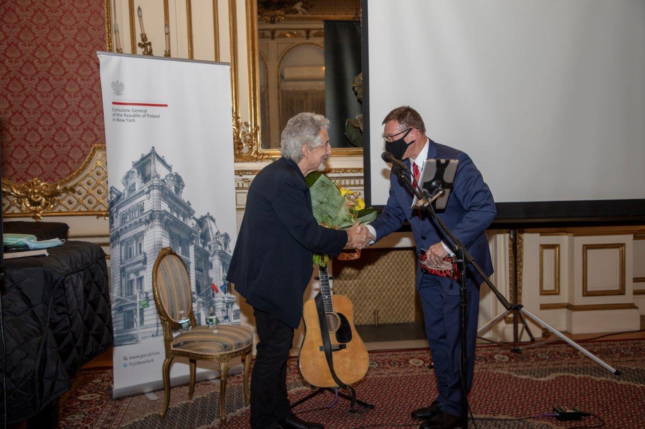 Marian Żak, dyrektor festiwalu podziękował Michałowi Hochmanowi za koncert pięknym bukietem oraz przedstawicielom Konsulatu Generalnego w Nowym Jorki, Konsulowi Generalnemu Adrianowi Kubickiemu, Konsulowi Mateuszowi Gmurze i Dyrektorowi Instytutu Kultury Polskiej Robertowi Szaniawskiemu za wspaniałą pomoc w realizacji Festiwalu. Podziękowania również otrzymali Anna Frajlich-Zając za piękną poezję, Bartek Szymański za świetną interpretację tej poezji oraz prowadzenie wieczoru, Agata Drogowska – Dyrektor Wykonawczy za pomoc przy realizacji i Jakub Polaczyk – Dyrektor Artystyczny za całokształt artystyczny festiwalu oraz Anna Żak – Sekretarz NYDAI.