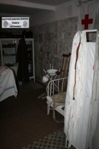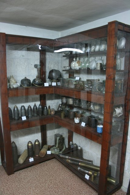 W jednej z izb można zajrzeć za kulisy życia codziennego żołnierzy – z czego pili, jedli, czy mieli jakieś rozrywki i nałogi, a także jak się ubierali. Świetnie zachowane metalowe i szklane butelki oraz menażki, skórzane paski, klamry, ciężkie plecaki i płócienne worki na wodę uzmysławiają surowość warunków, z jakimi musieli zmierzyć się nierzadko bardzo młodzi żołnierze. W kolejnej izbie znajdziemy kolekcję solidnej, unikatowej artylerii, w tym takie perełki jak fragmenty pierwszej ładowanej odtylcowo armaty austro-węgierskiej M. 61 wraz z zamkiem, celownikiem i pociskiem.