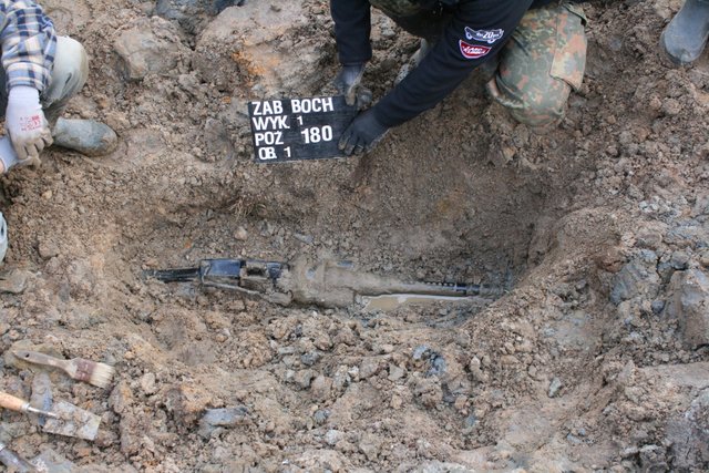 Powszechną radość wywołały wydobyte z wykopu dwa karabiny pokładowe MG 131 w stanie nadspodziewanie dobrym.