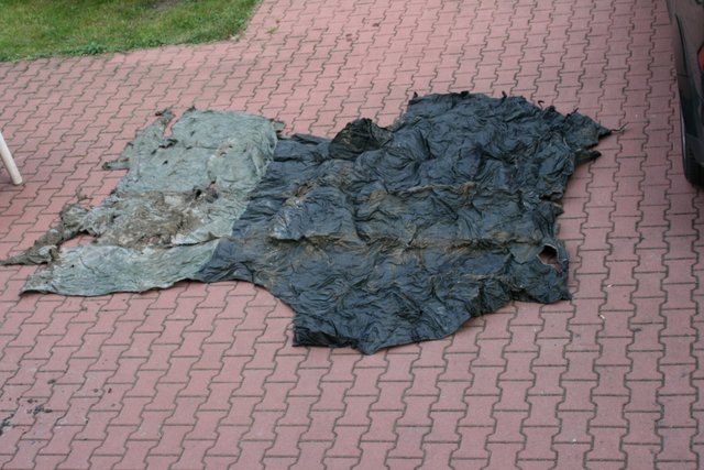 Najpierw znaleziono plandekę postojową zachowaną w idealnym stanie. Wielkim zaskoczeniem dla wszystkich było odnalezienie biało-czerwonego dużego proporca.
